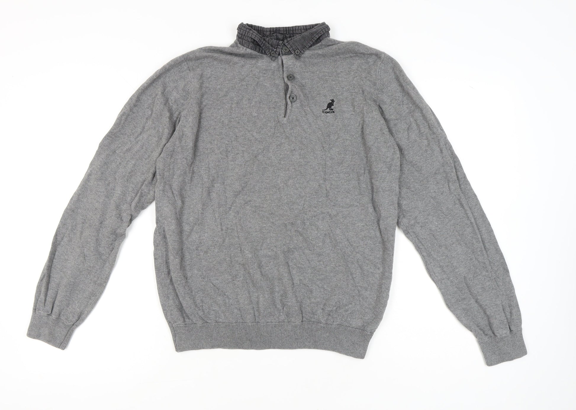 Kangol Mens Grey Cotton Henley Jumper Size L Long Sleeve Casual