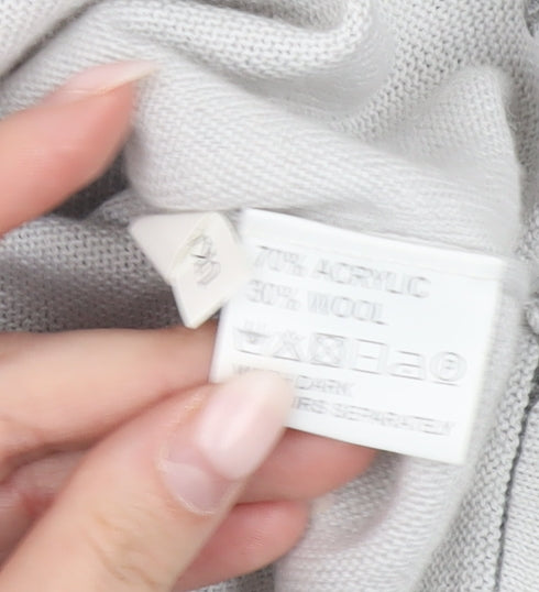 Kangol Mens Grey V-Neck Pullover Jumper L Wool Blend Long Sleeve