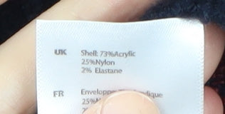 - Material Breakdown: 73% Acrylic 25% Nylon 2% Elastane