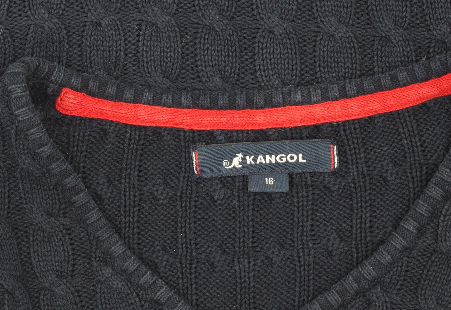 Kangol Women's Blue V-Neck Cable Knit Jumper Size 16