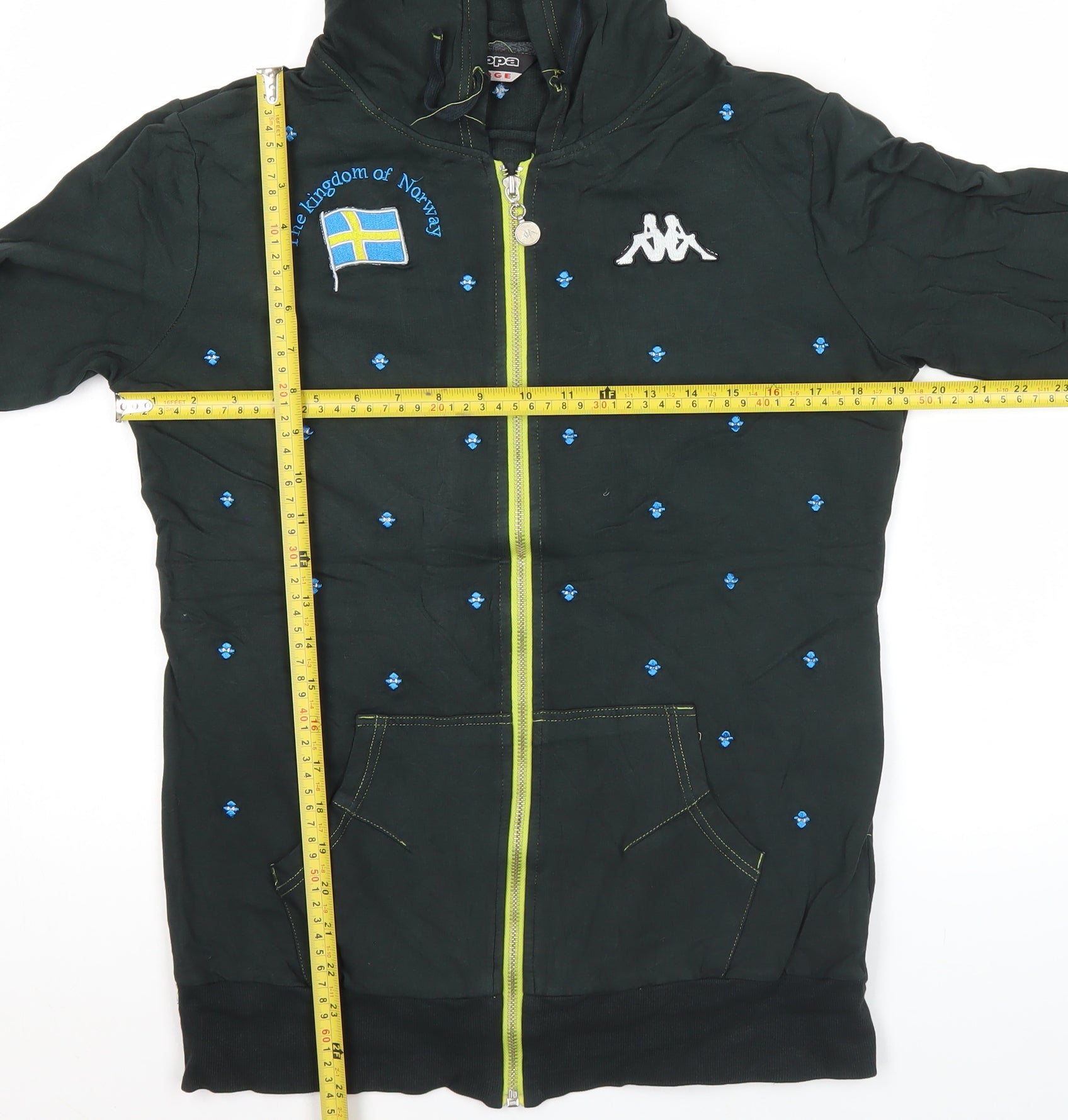 Kappa Womens Black Hoodie Size 10 Embroidered Full Zip Sweatshirt