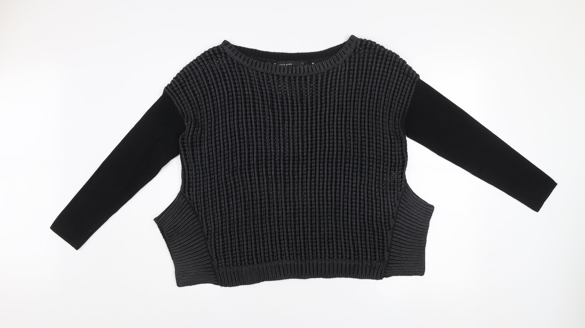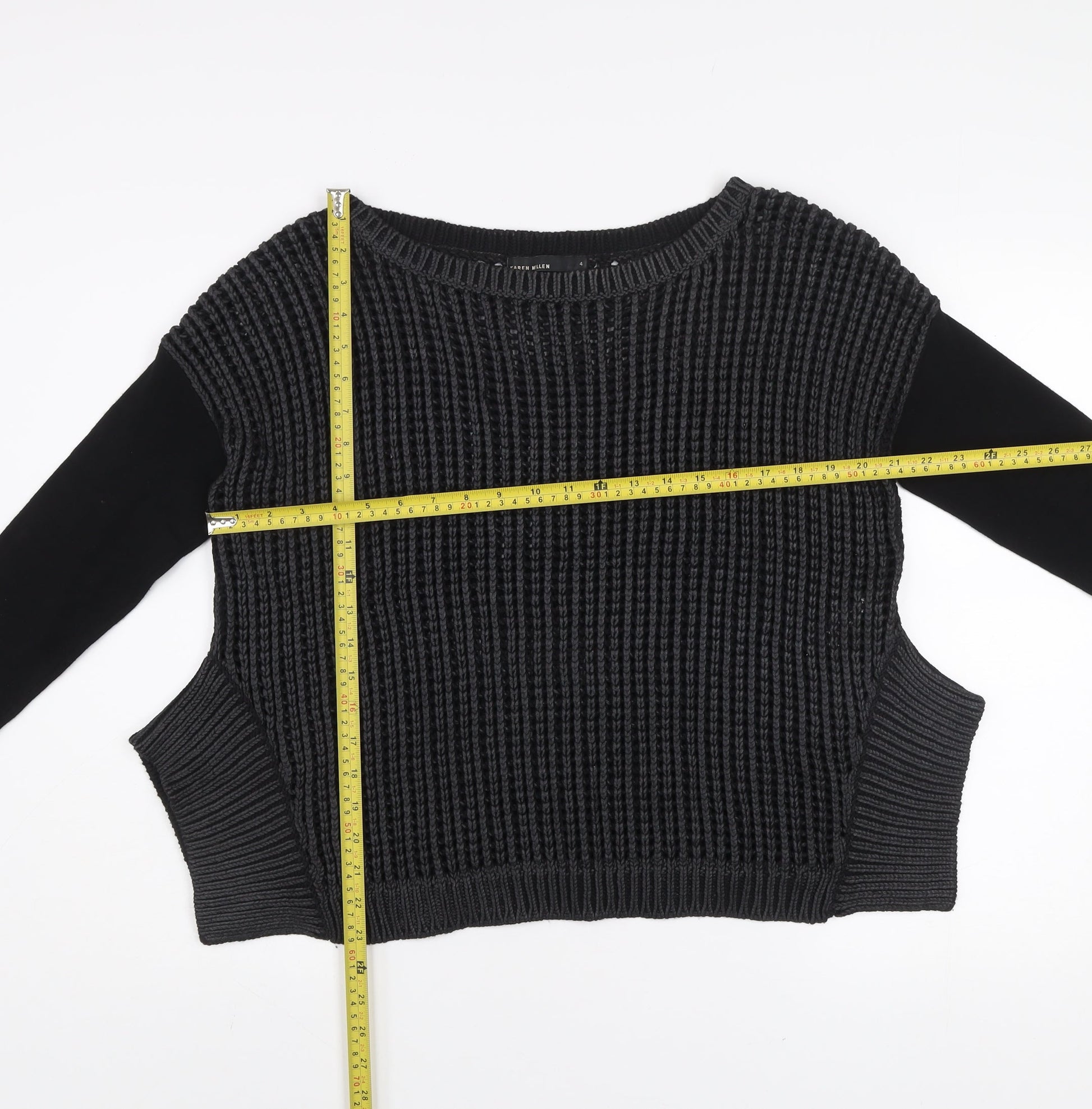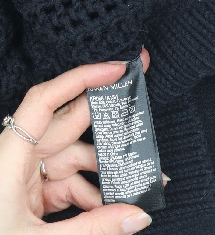 Karen Millen Women’s Black Chunky Knit Jumper Size 4 Long Sleeve Cotton Blend