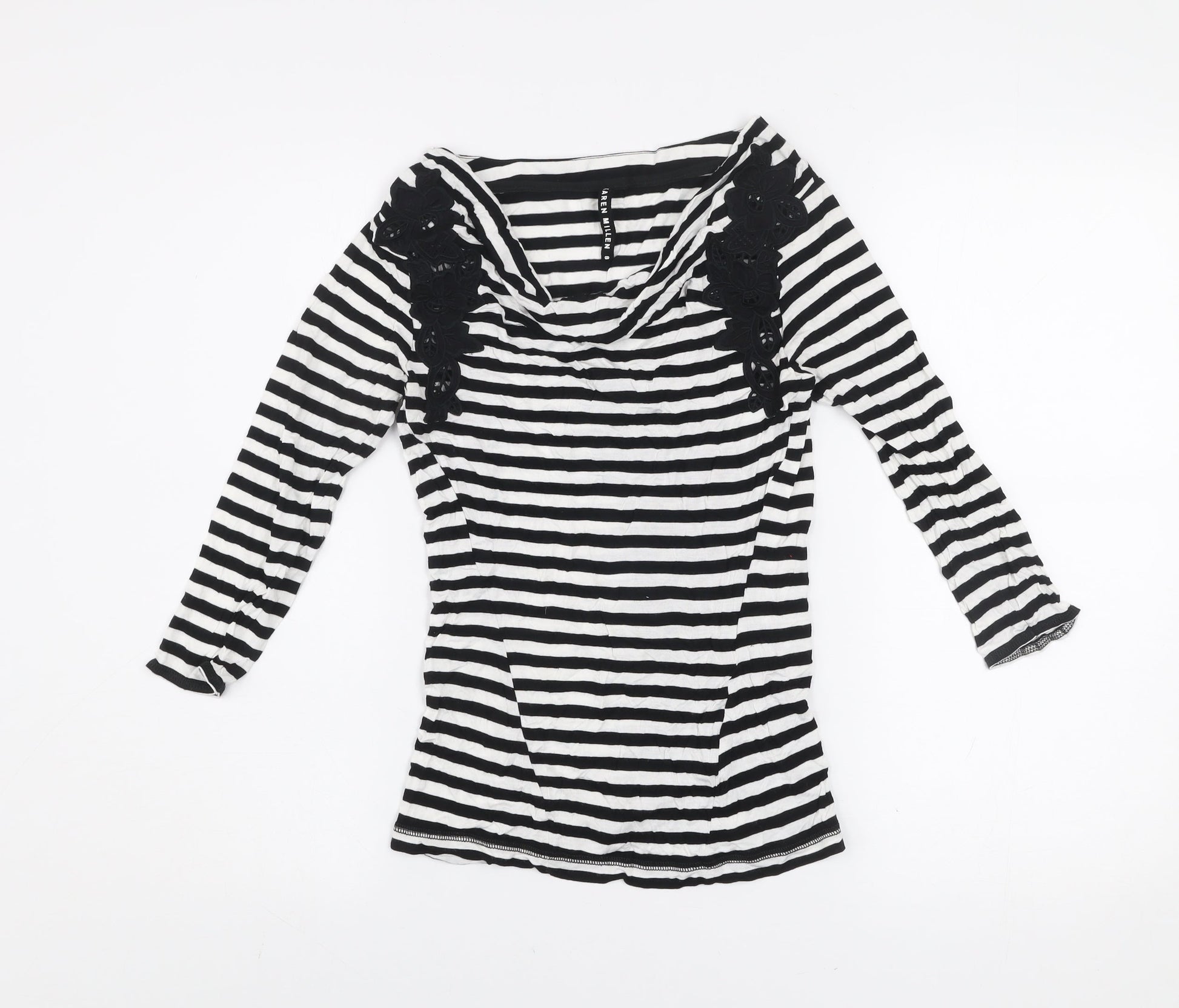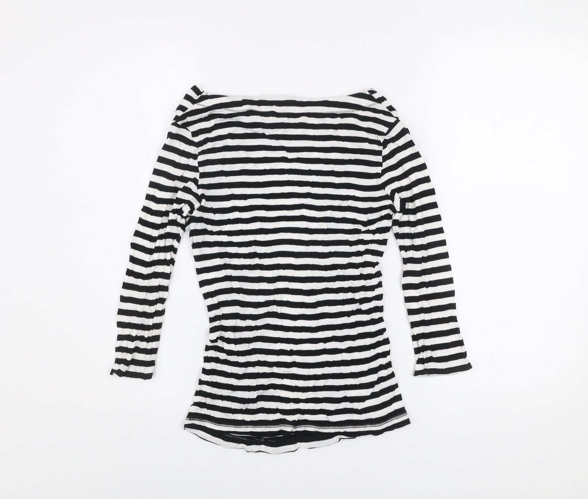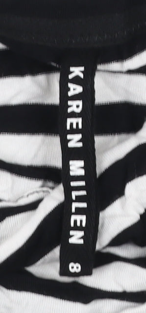 Karen Millen Women’s Black White Striped Cowl Neck Long Sleeve T-Shirt Size 8