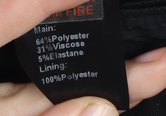- Material Breakdown: 64% Polyester 31% Viscose 5% Elastane