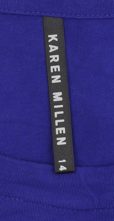 Karen Millen Women's Blue 3/4 Sleeve Zip Detail Jersey Blouse Size 14