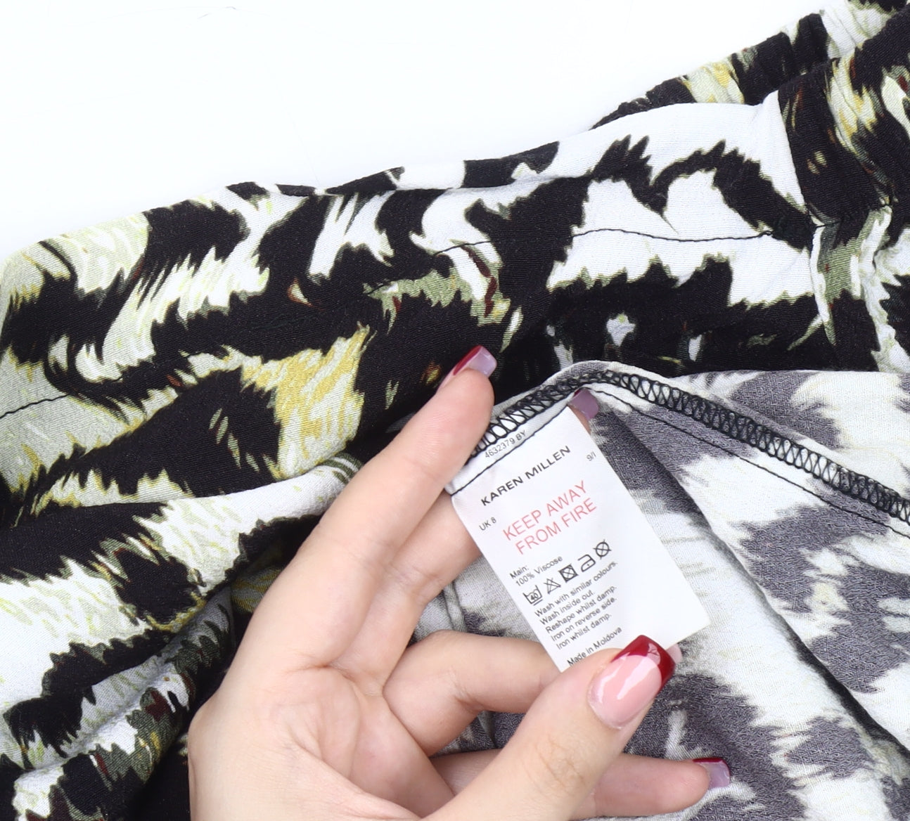 Karen Millen Women's Multicoloured Leopard Print Peasant Blouse UK 8