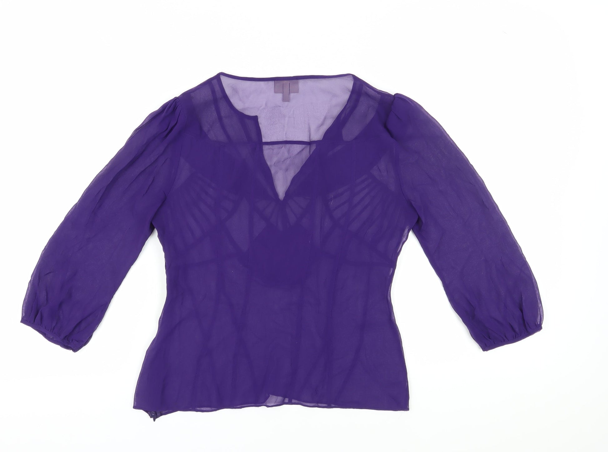 Karen Millen Women's Purple Ruffle Blouse, Size 12