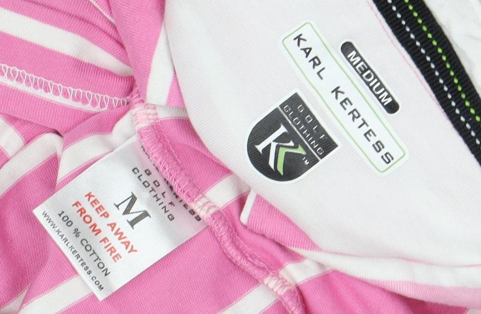 Karl Kertess Men's Pink Striped Polo, Medium, Short Sleeve