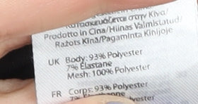 - Material Breakdown: 93% Polyester 7% Elastane