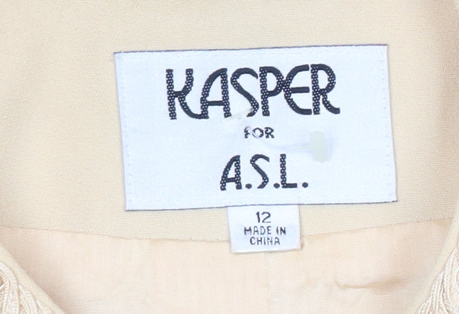 Kasper Women Beige Size 12 Embroidered Mid-Length Suit Jacket