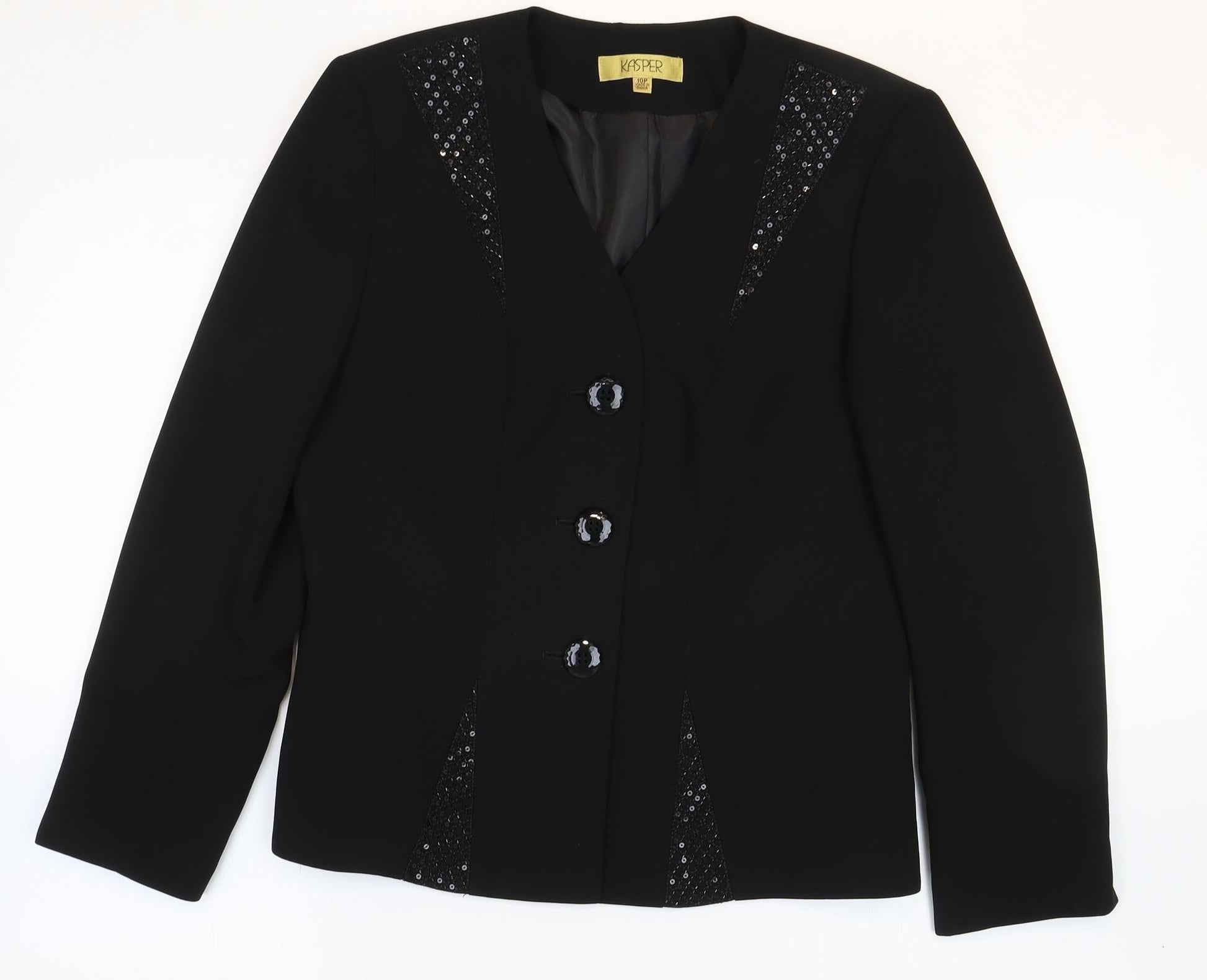 Kasper Womens Black Polyester Jacket Suit Jacket Size 10 - Sequin