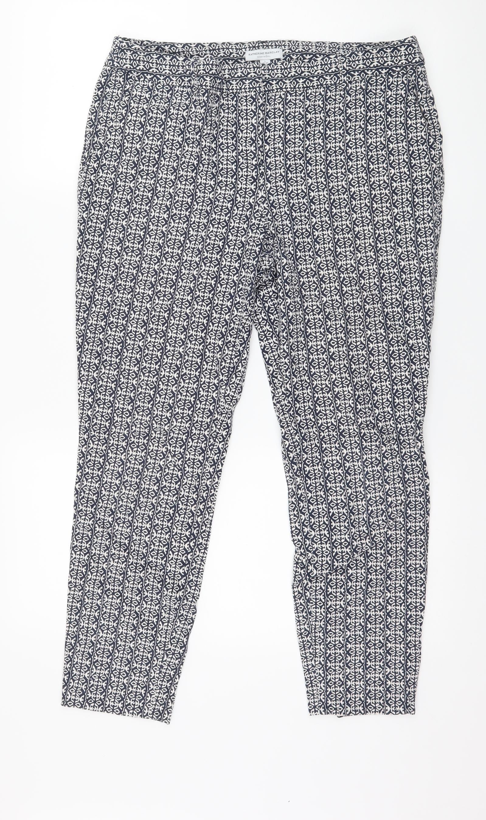 Katherine Barclay Womens Blue Geometric Trousers Size 14 L25 in