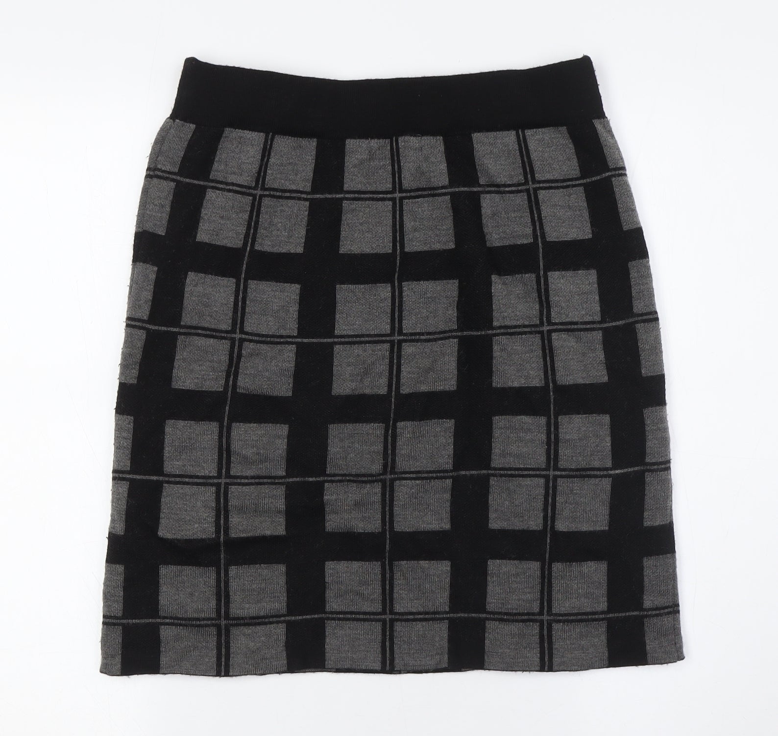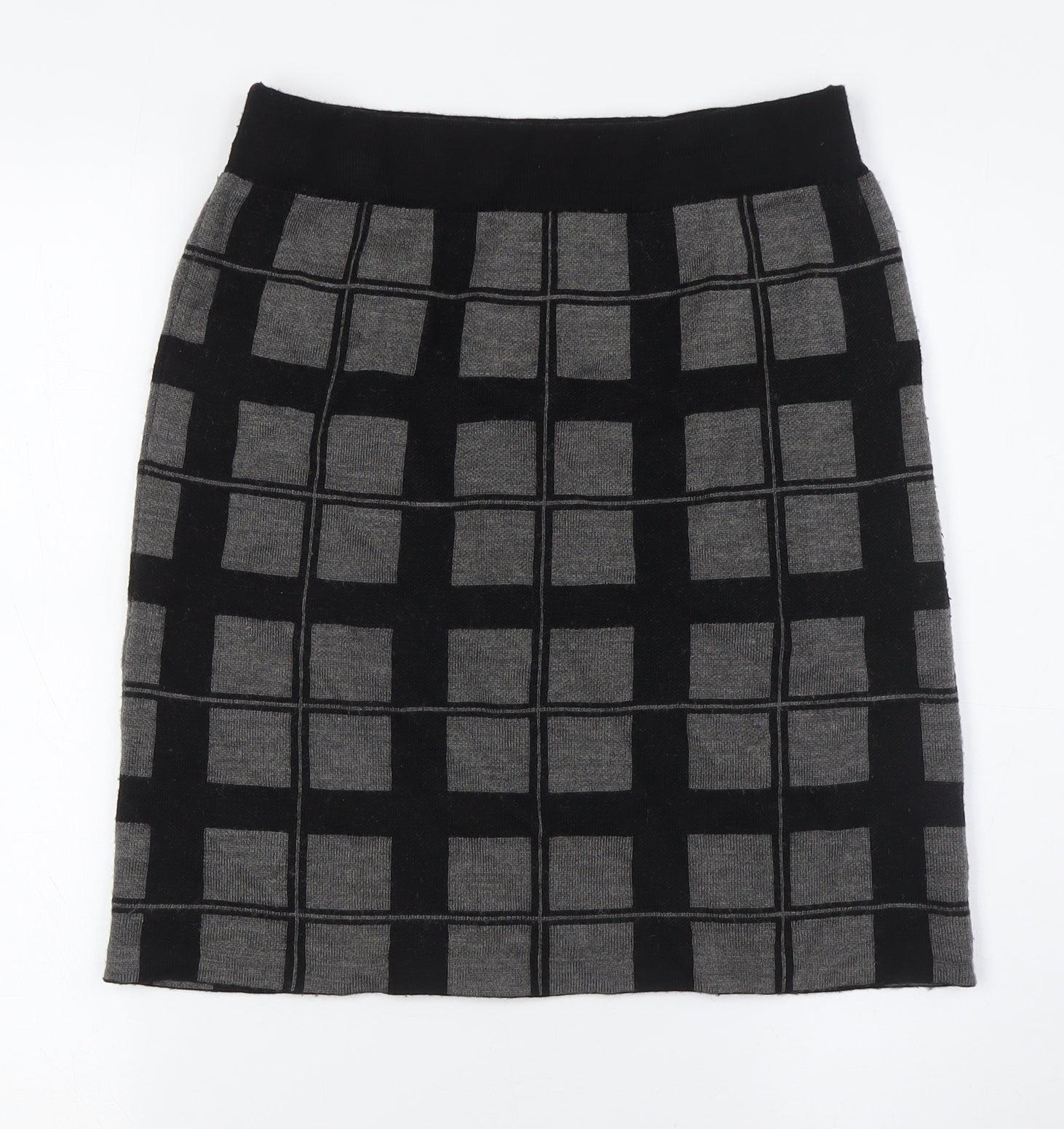 Kenar Womens Grey Check Acrylic A-Line Skirt Size S - Elasticated Waist