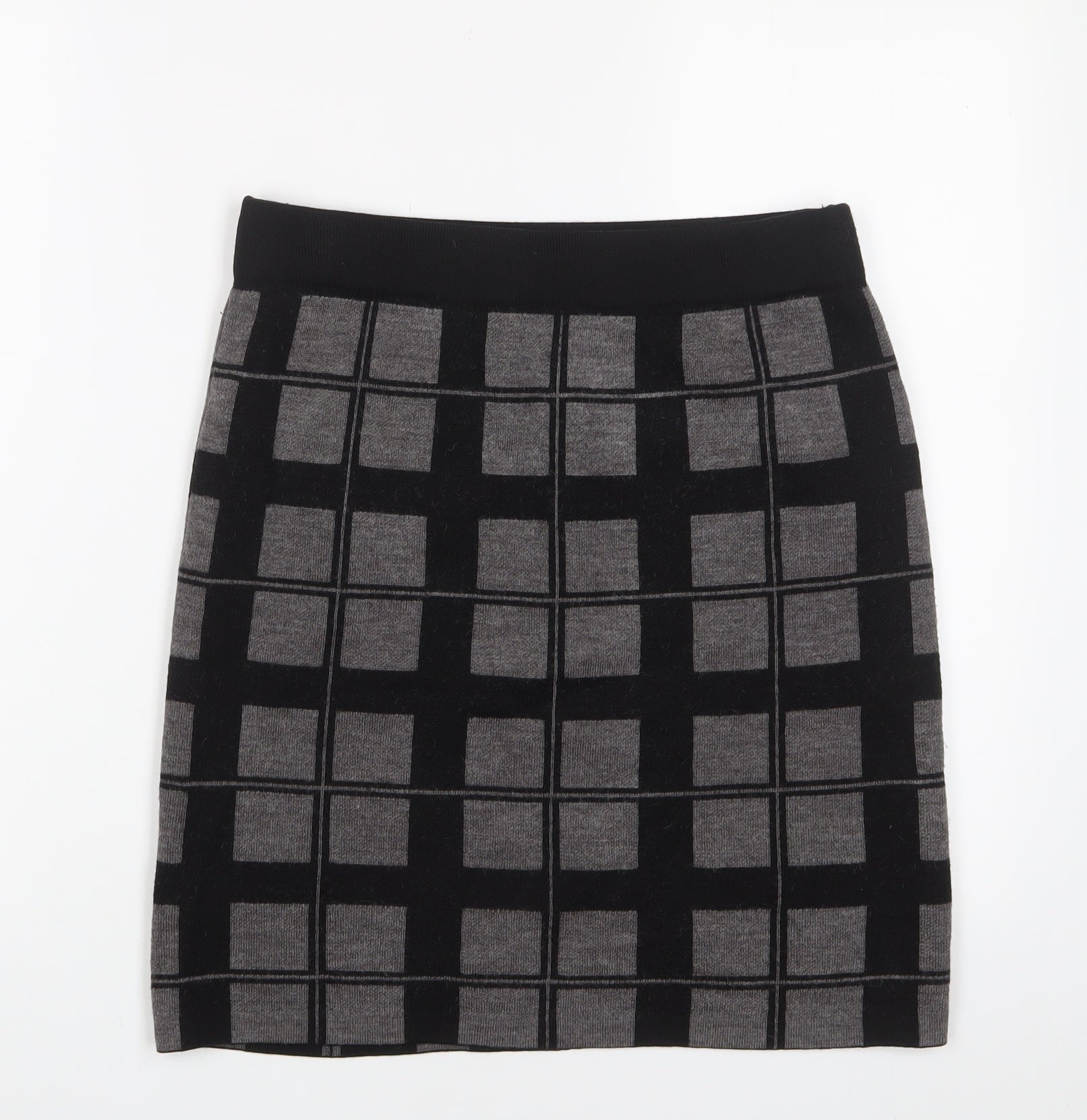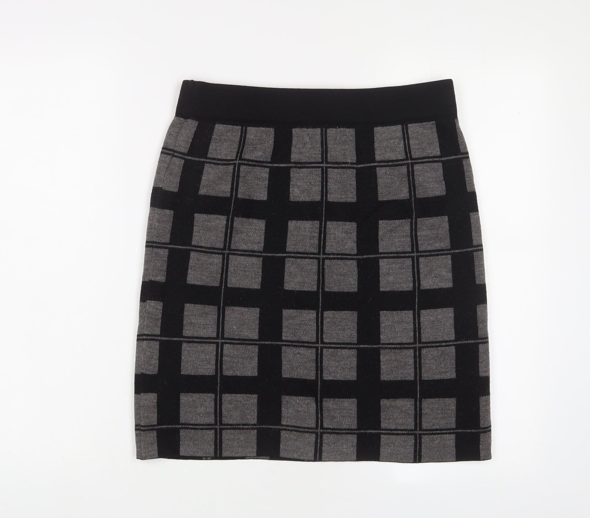 Kenar Womens Grey Plaid Acrylic A-Line Skirt Size M