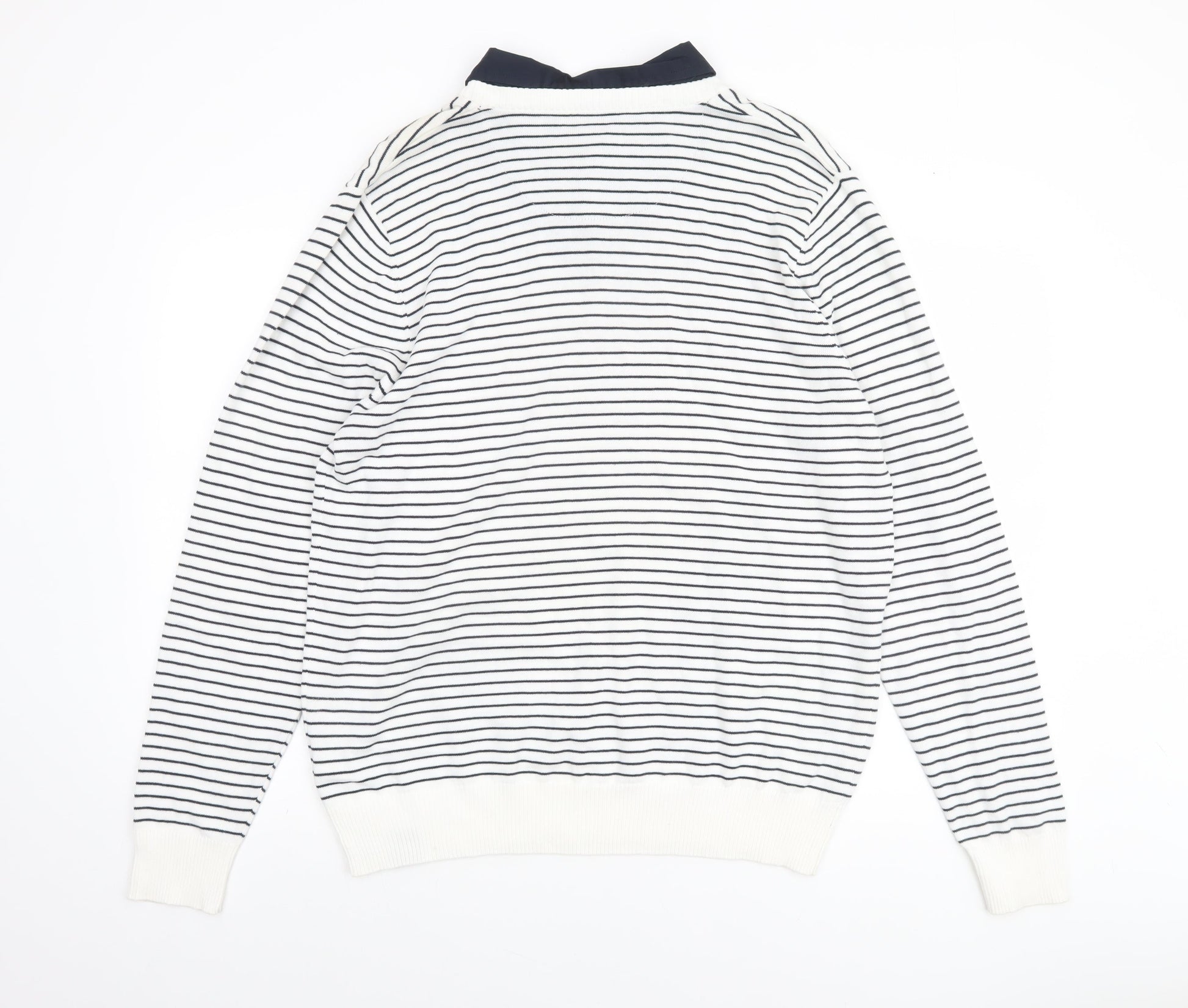 Kensington Dockside Mens White Striped V-Neck Jumper Size 2XL