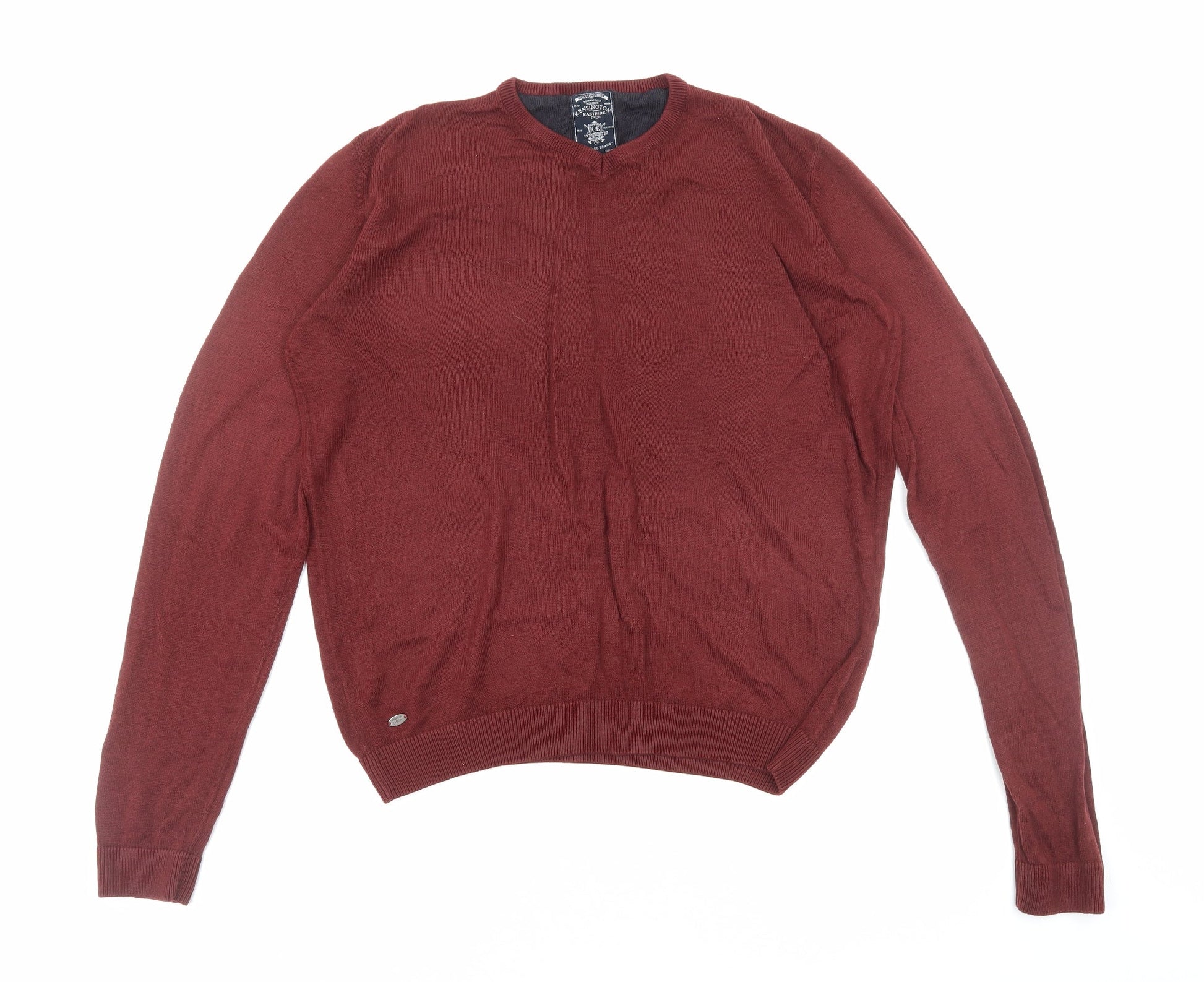 Kensington Eastside Mens Red Round Neck Acrylic Pullover Jumper Size M Long Sleeve