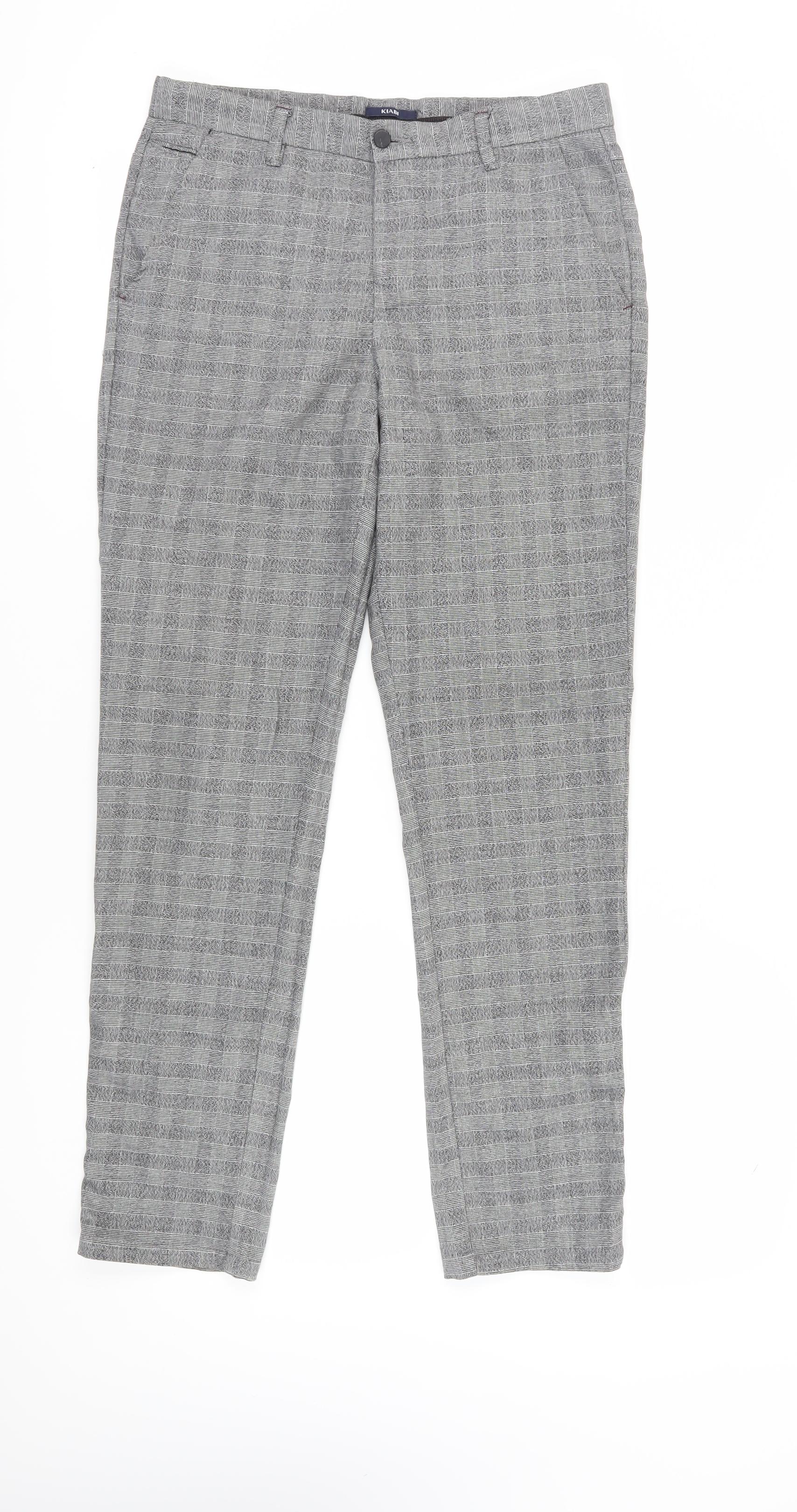 Kiabi Men Grey Slim Fit Check Chino Trousers 40