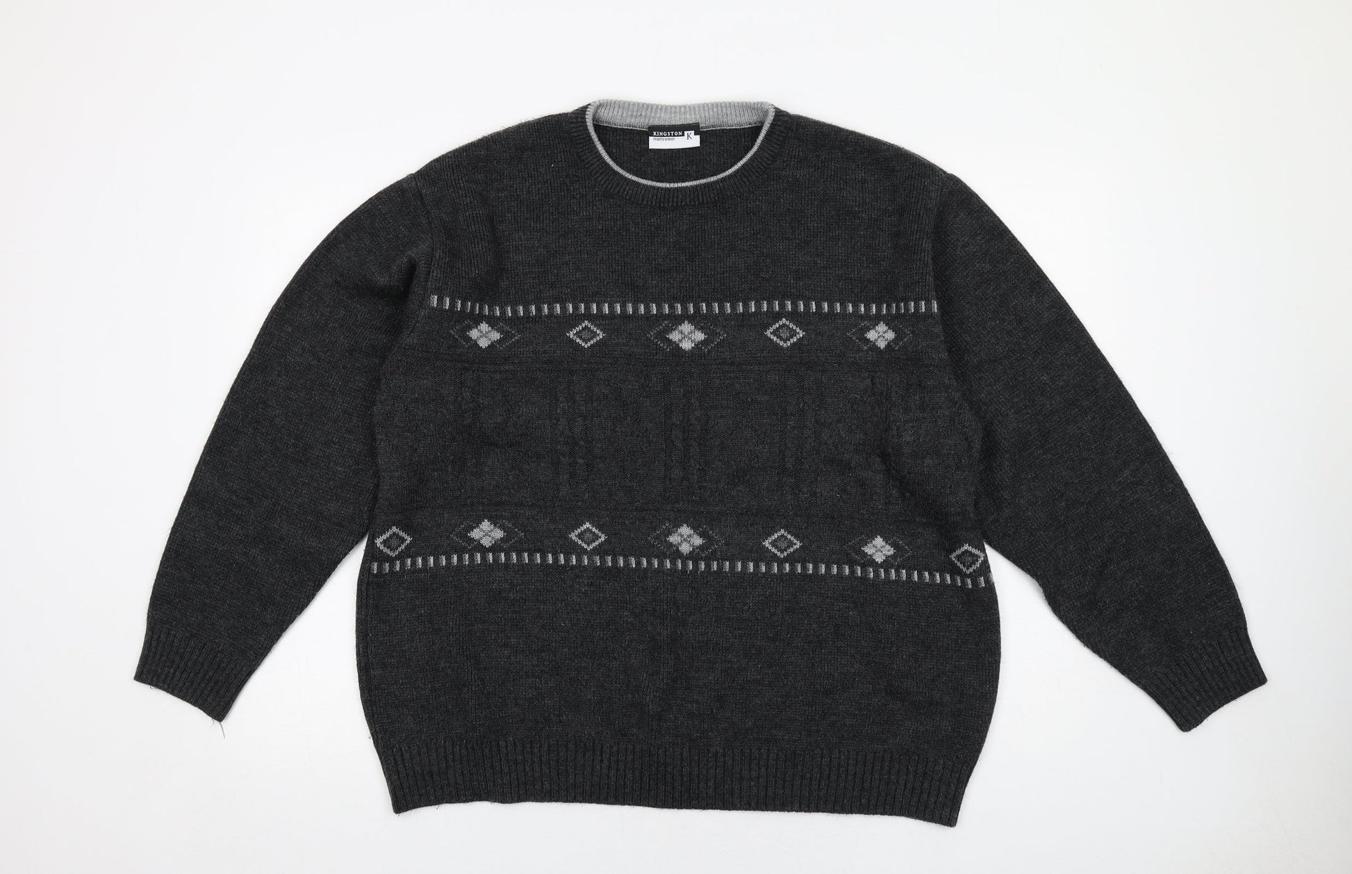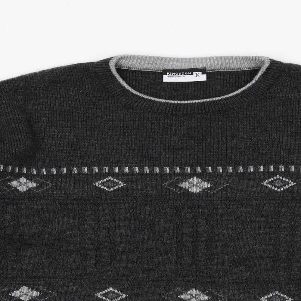 Kingston Mens Grey Round Neck Acrylic Pullover Jumper Size L Long Sleeve