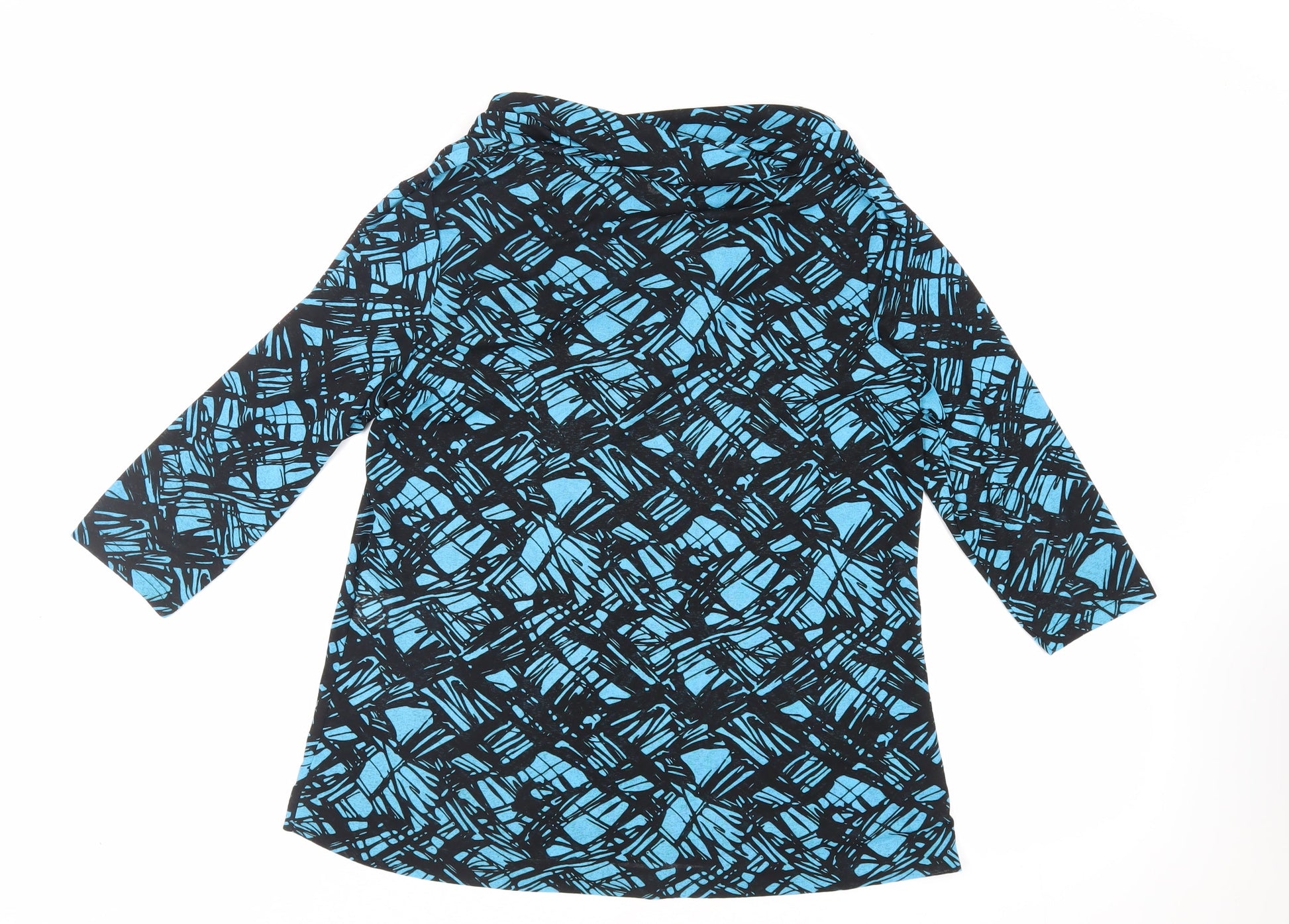 Klass Collection Womens Blue Geometric Polyester Basic Blouse Size XL Cowl Neck