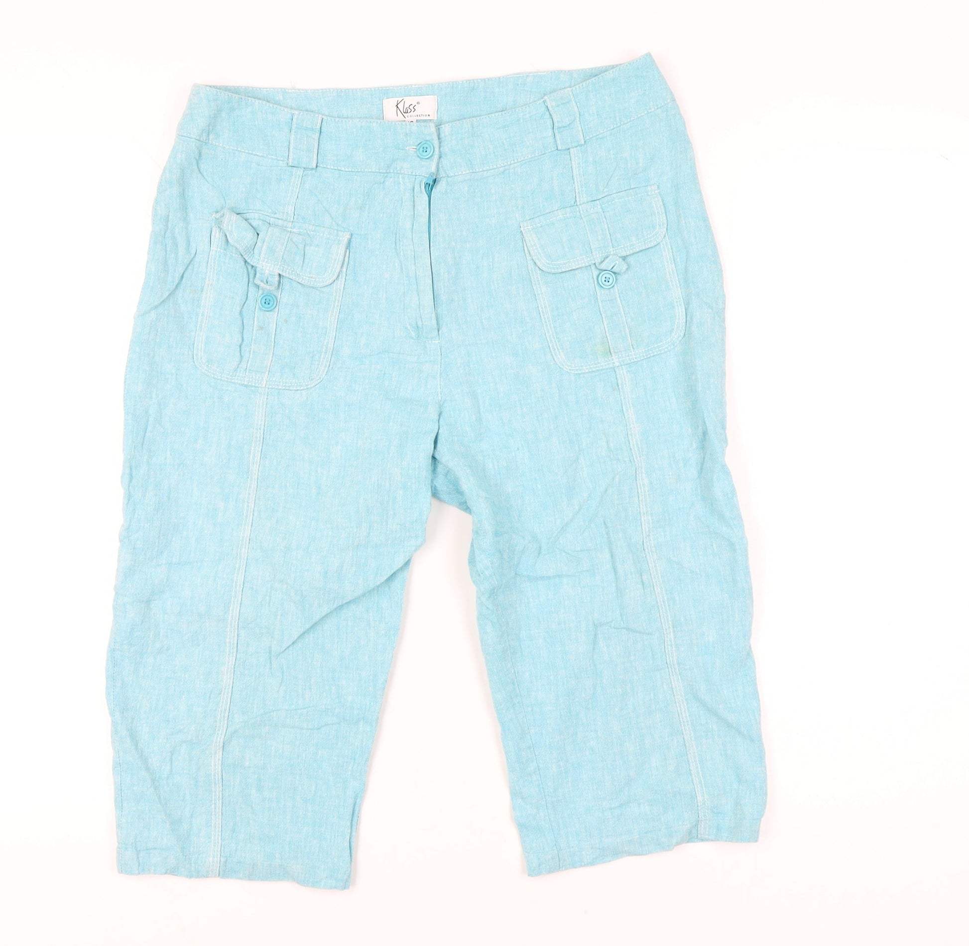 Klass Collection Womens Blue Linen Capri Trousers Size 16