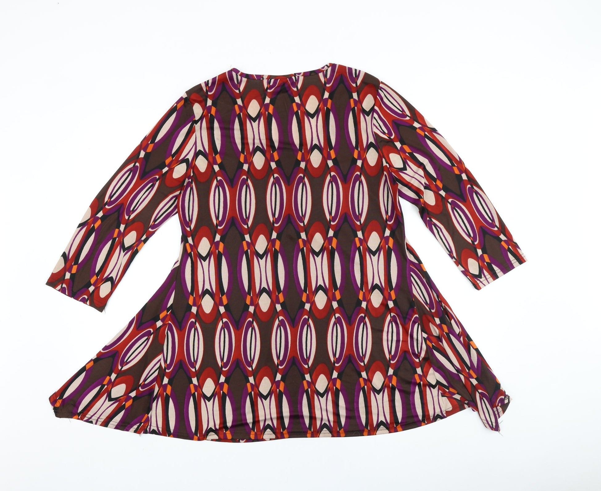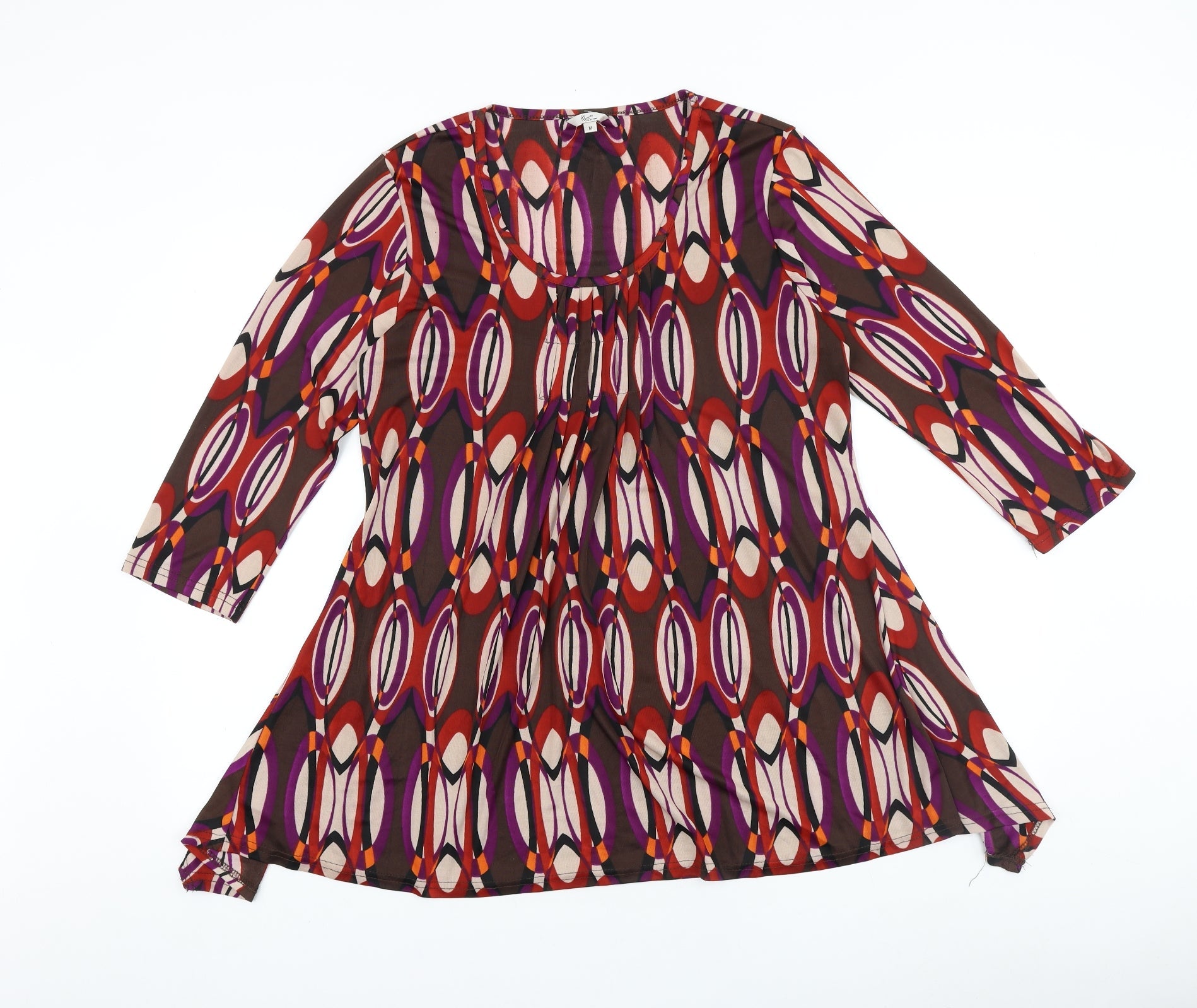 klass collection Womens Brown Geometric Viscose Basic Blouse Size M Scoop Neck