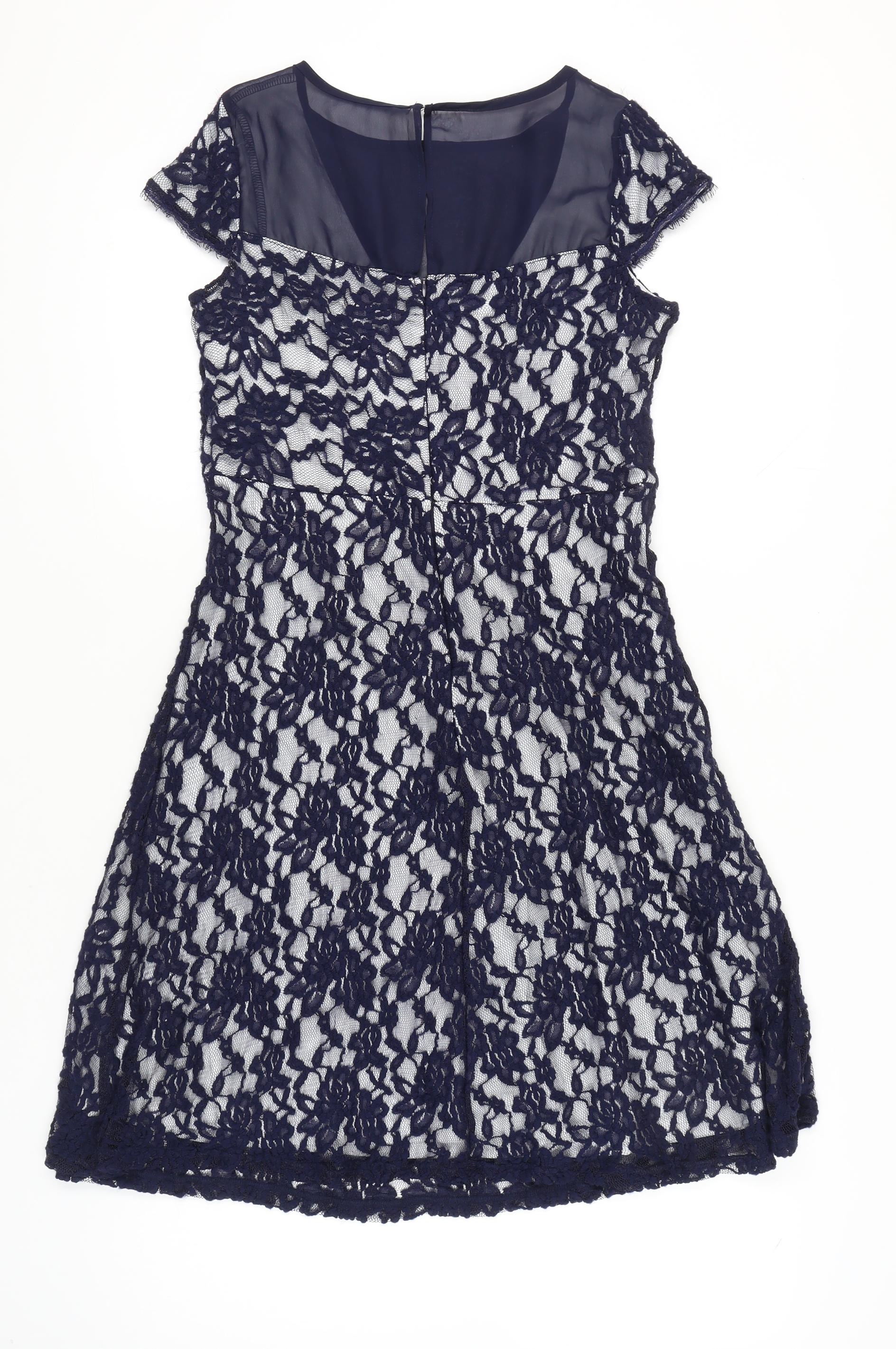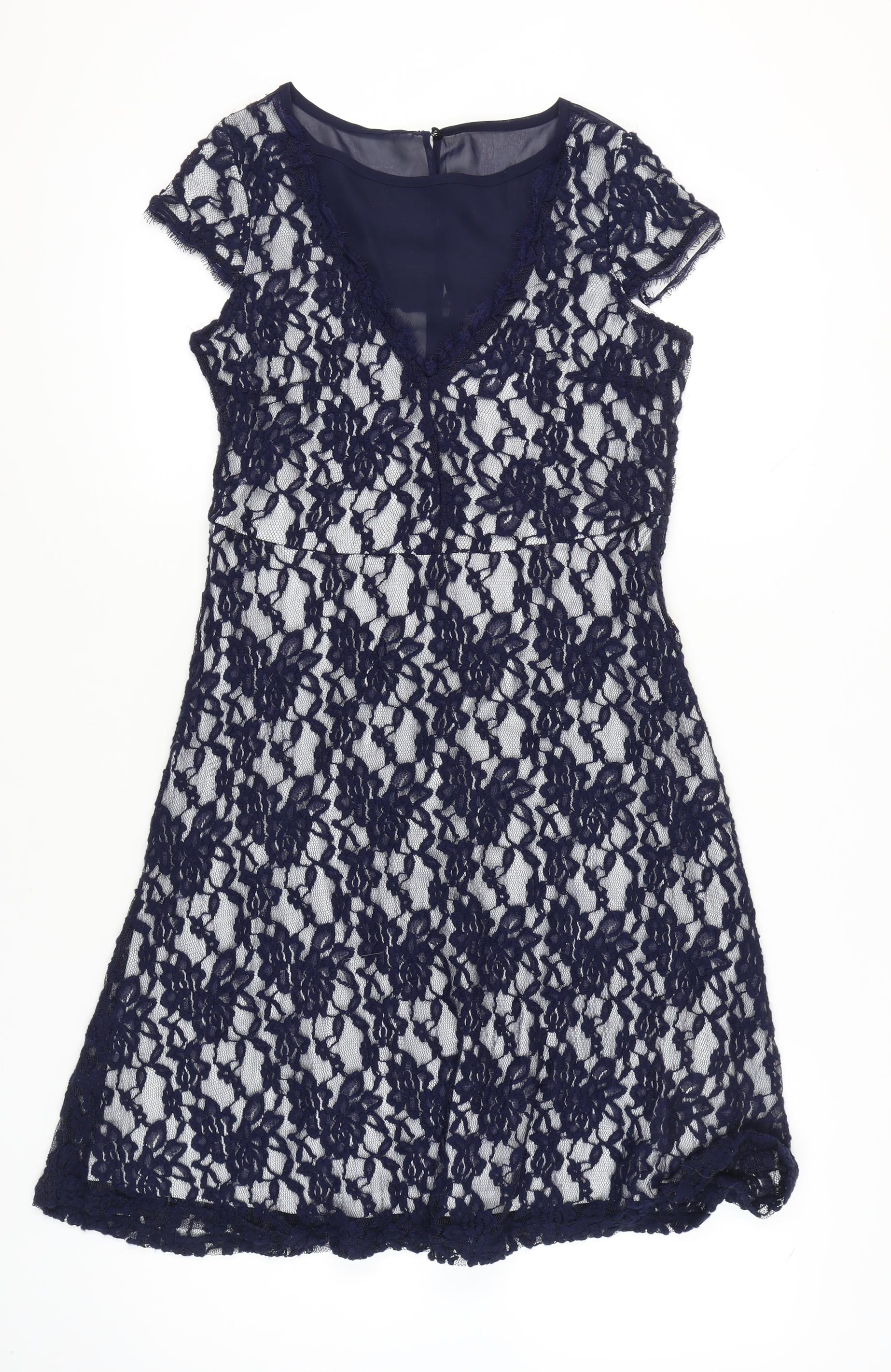 Klass Women’s Navy Blue Lace Sheath Dress Size 12 Knee Length V-Neck