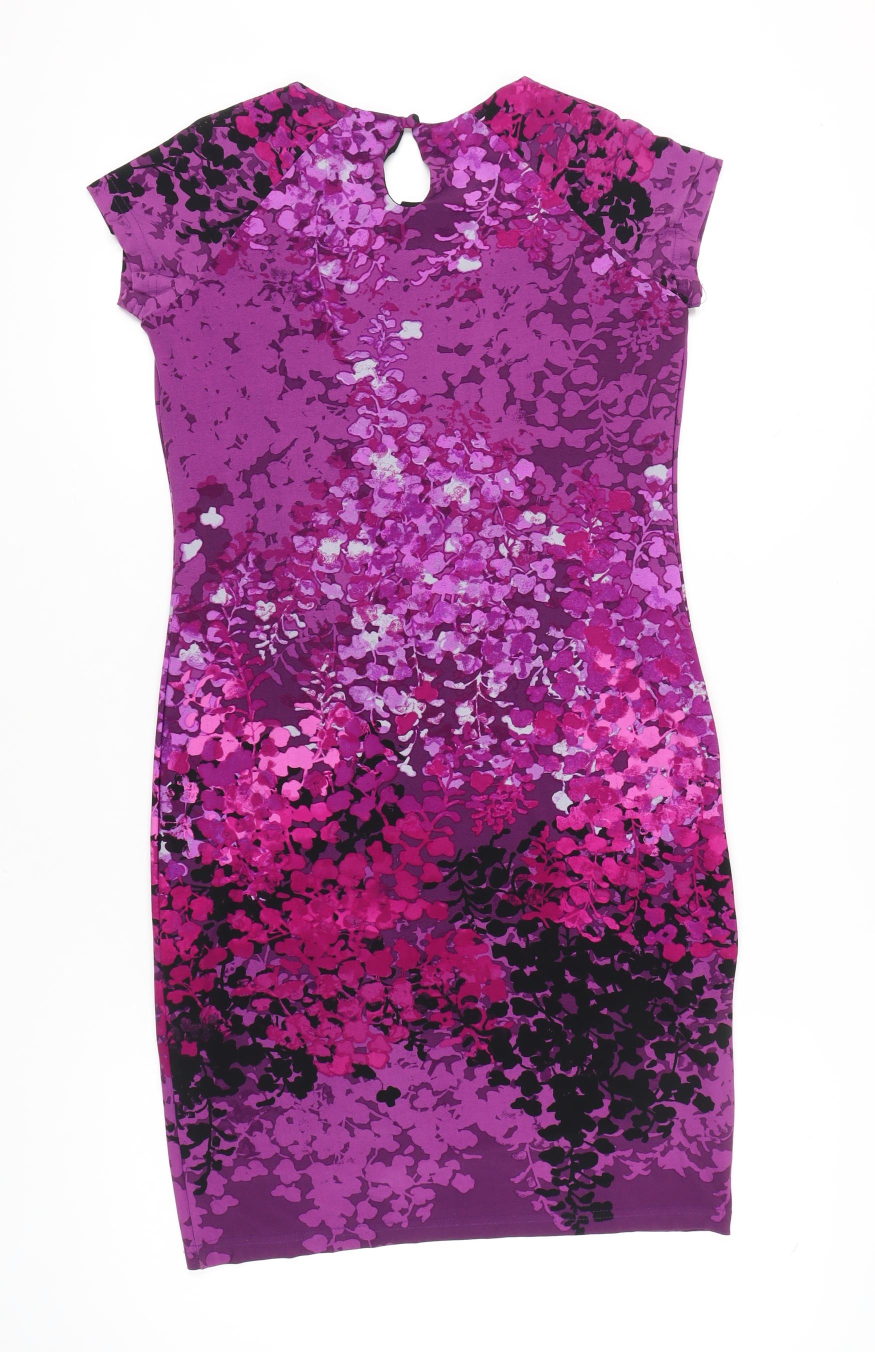 Klass Women’s Purple Floral Sheath Dress Size 12 Short Sleeve