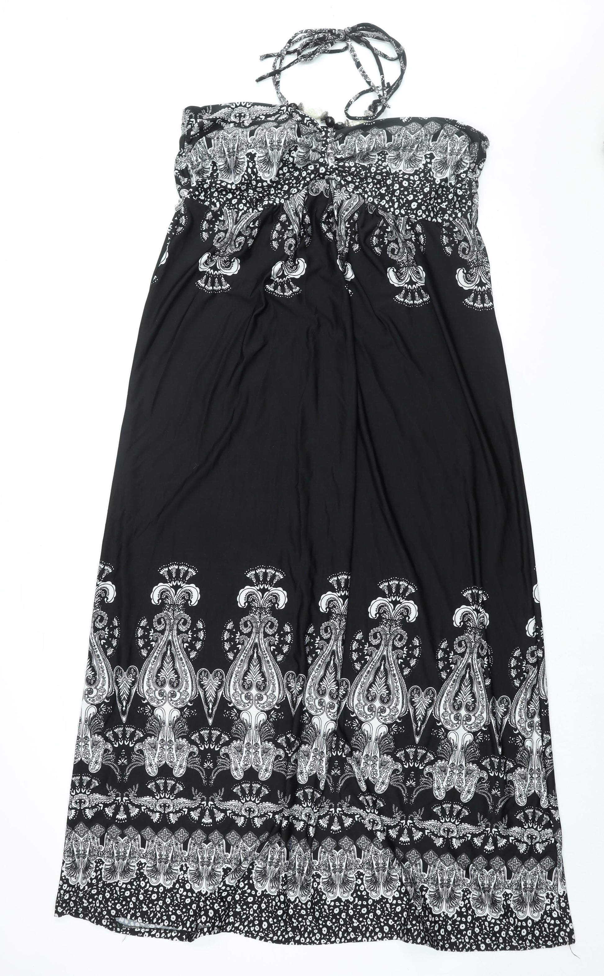 Klass Womens Black Geometric Polyester Maxi Size 18 Halter Tie - Beaded Neckline