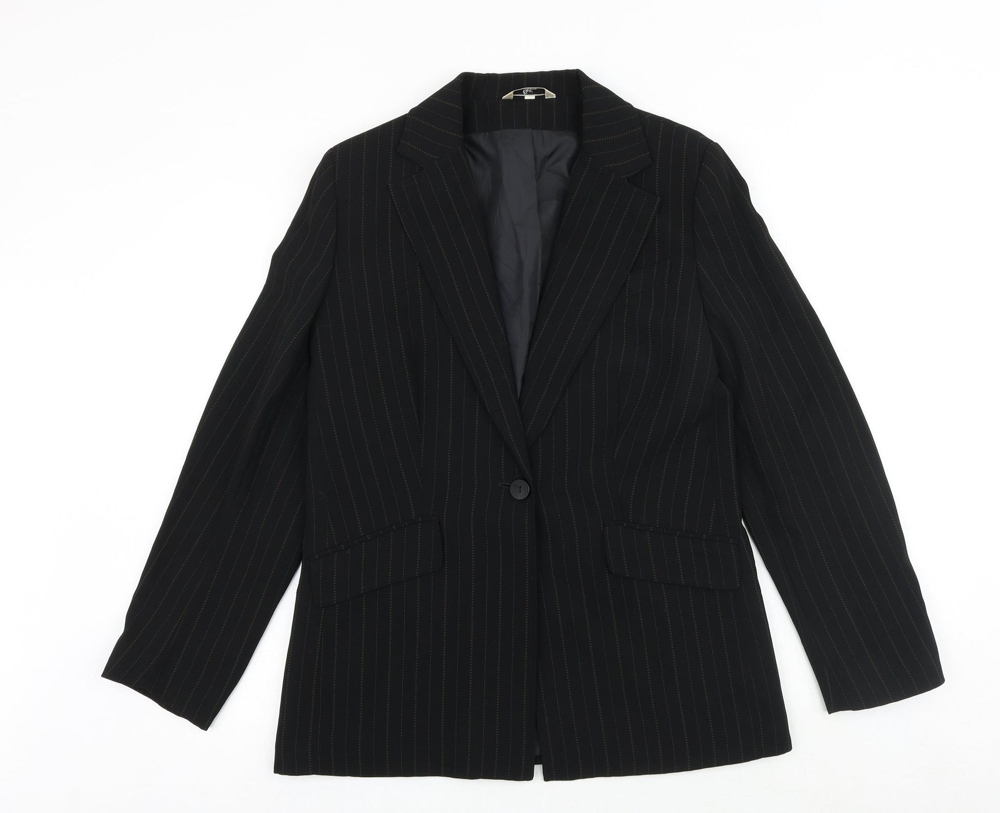 Klass Womens Black Pinstripe Polyester Jacket Suit Jacket Size 12