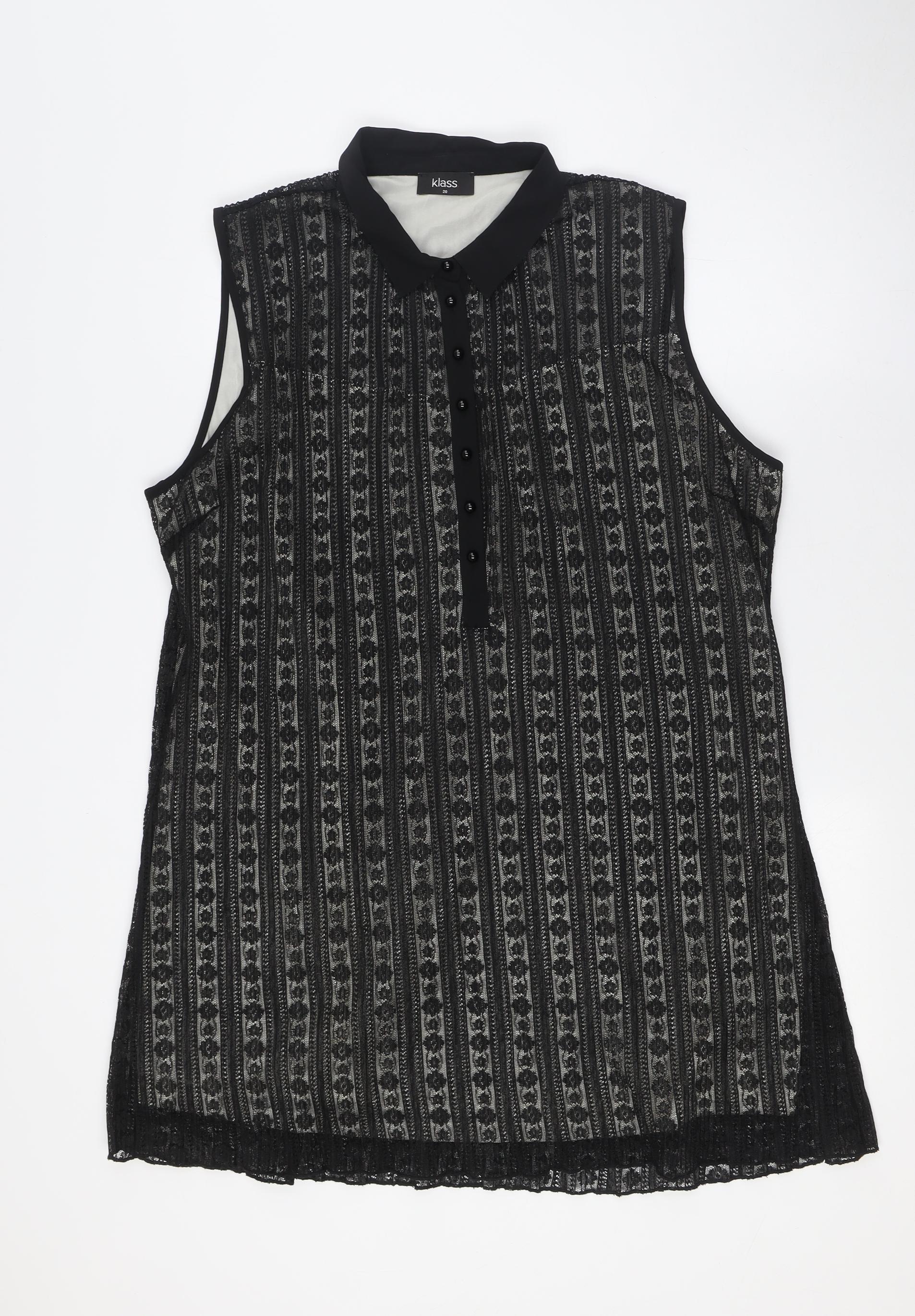 Klass Womens Black Polyester A-Line Size 20 Collared Button - Lace Overlay