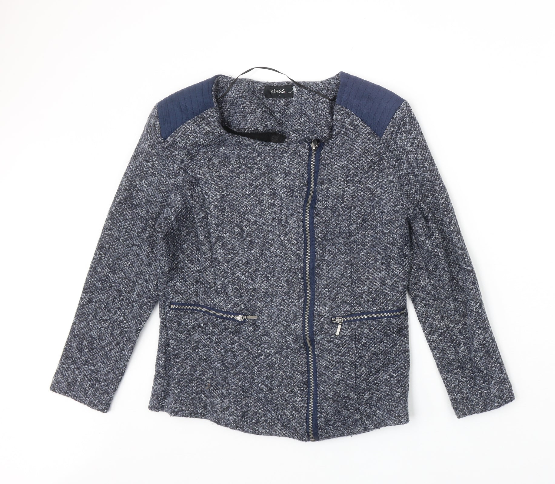 Klass Womens Blue Geometric Jacket Size 10 Zip