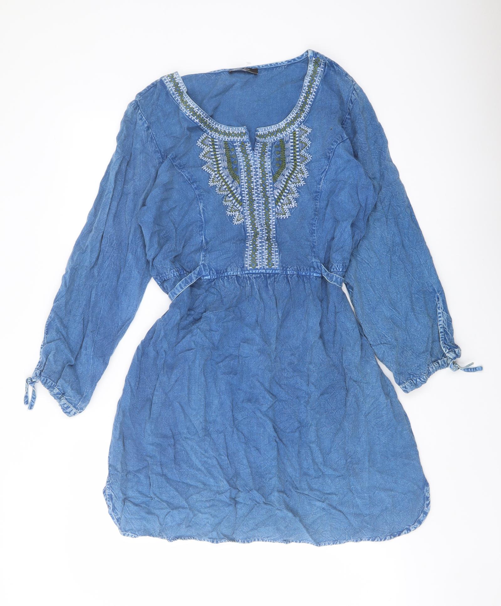 Klass Womens Blue Viscose A-Line Size 14 Round Neck Pullover