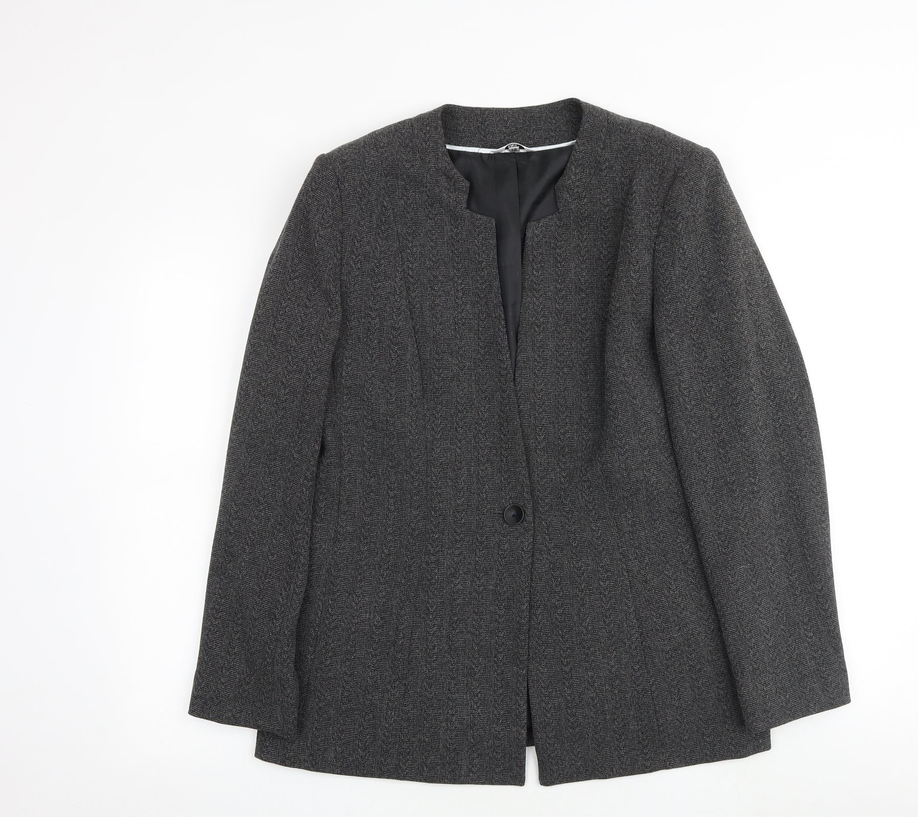 Klass Womens Grey Geometric Jacket Blazer Size 14 Button