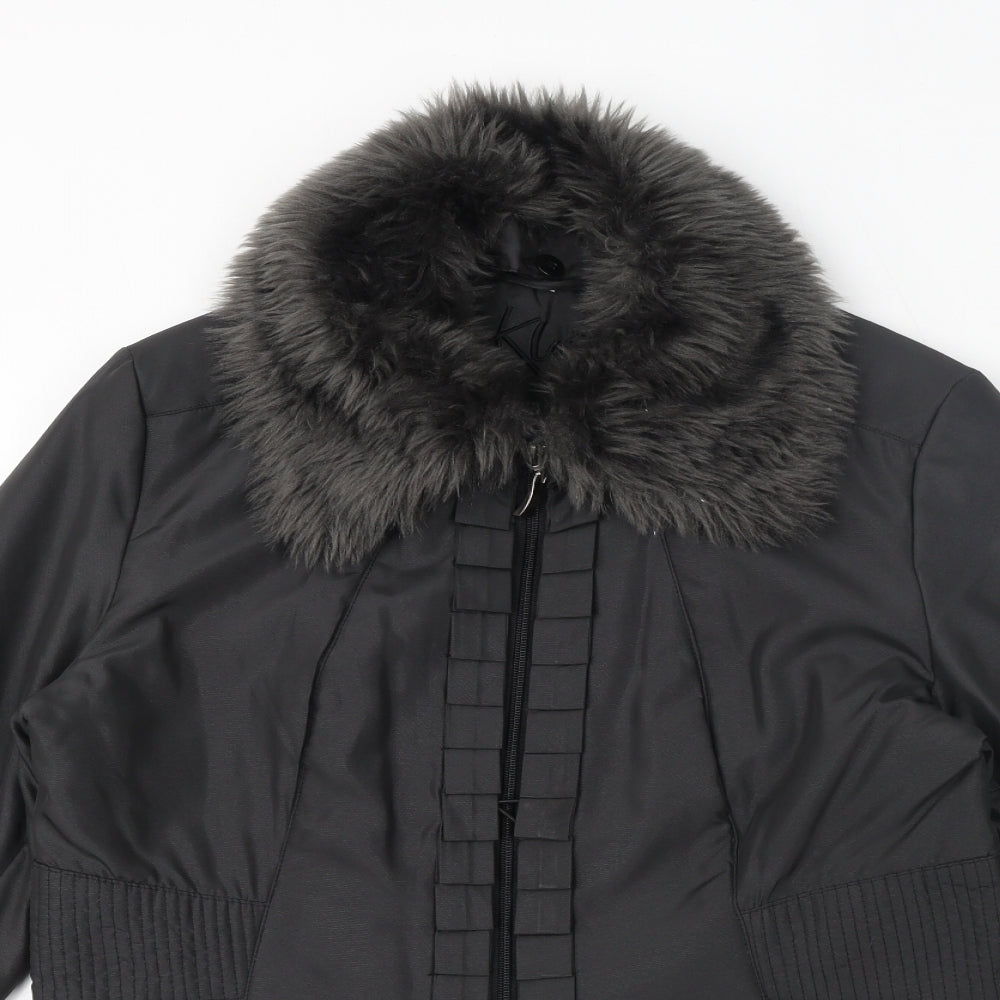 Klass Womens Grey Overcoat Coat Size S Zip - Faux Fur Collar