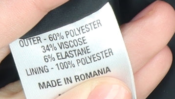 - Material Breakdown: 60% Polyester 34% Viscose 6% Elastane
