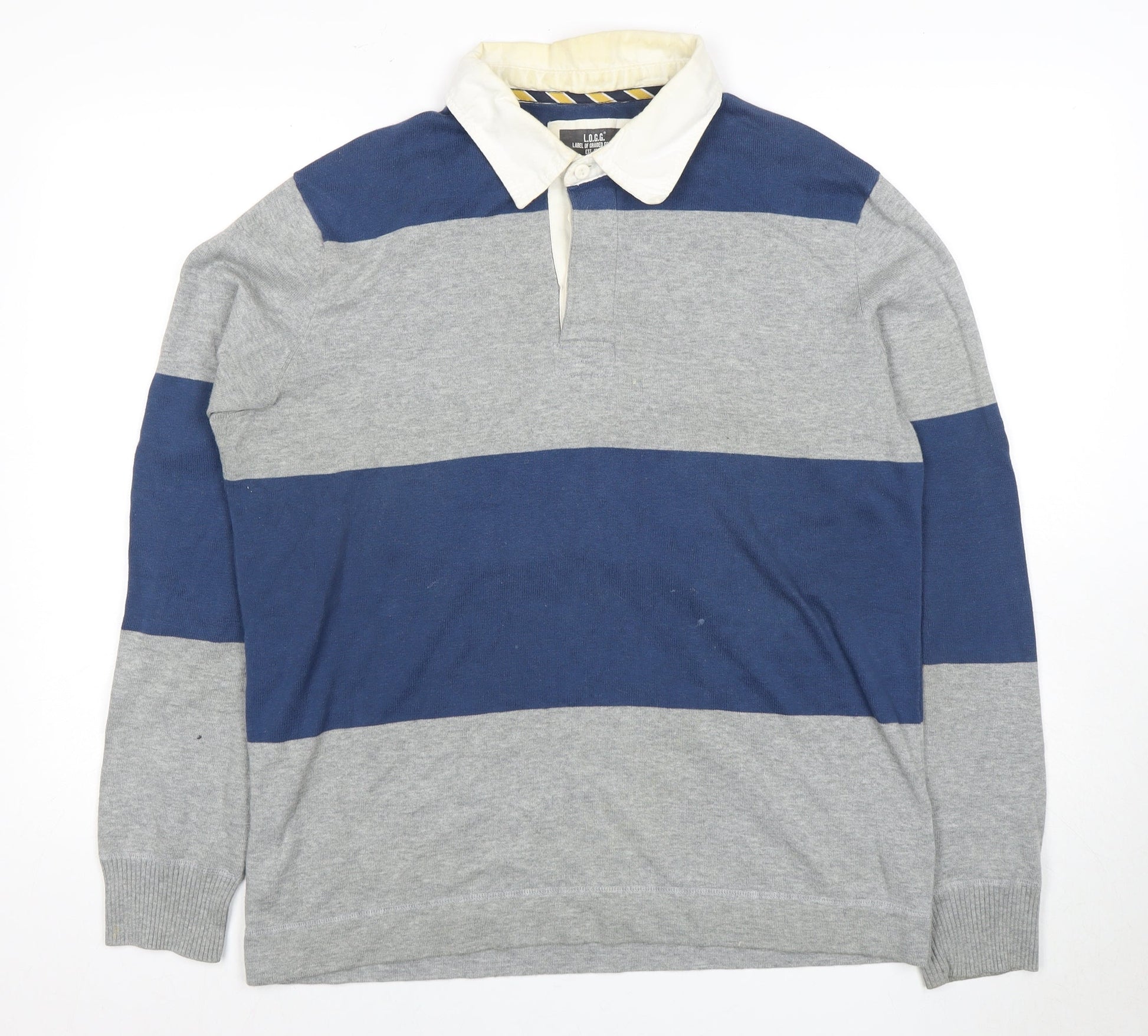 L.O.G.G. Men's Blue Cotton Polo, L, Long Sleeve
