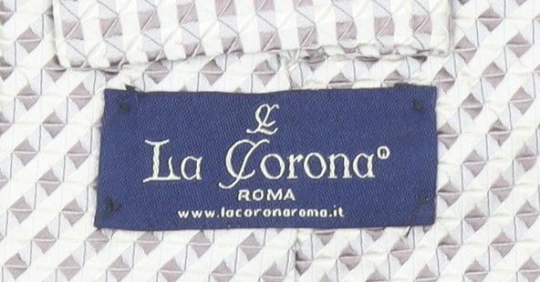 La Corona Men’s Beige Geometric Silk Tie – Designer Woven Style