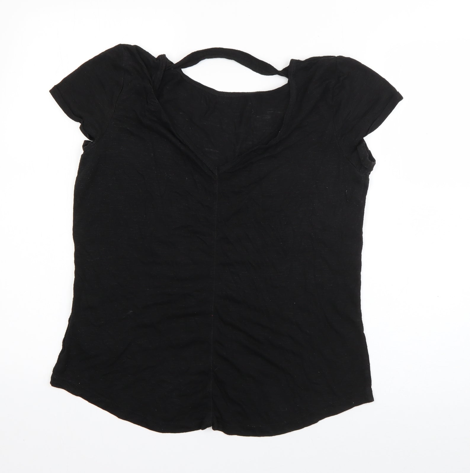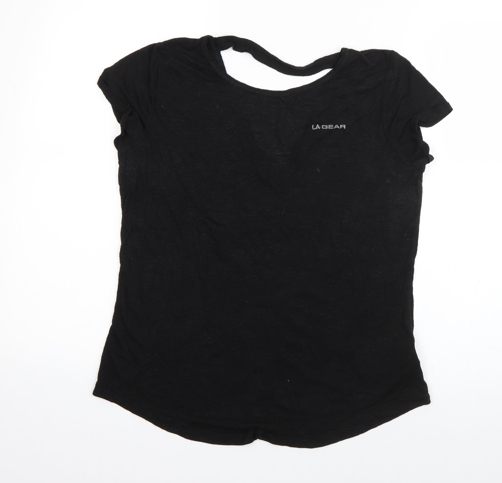 LA Gear Womens Black Polyester Basic T-Shirt Size 10 Boat Neck - Cut out