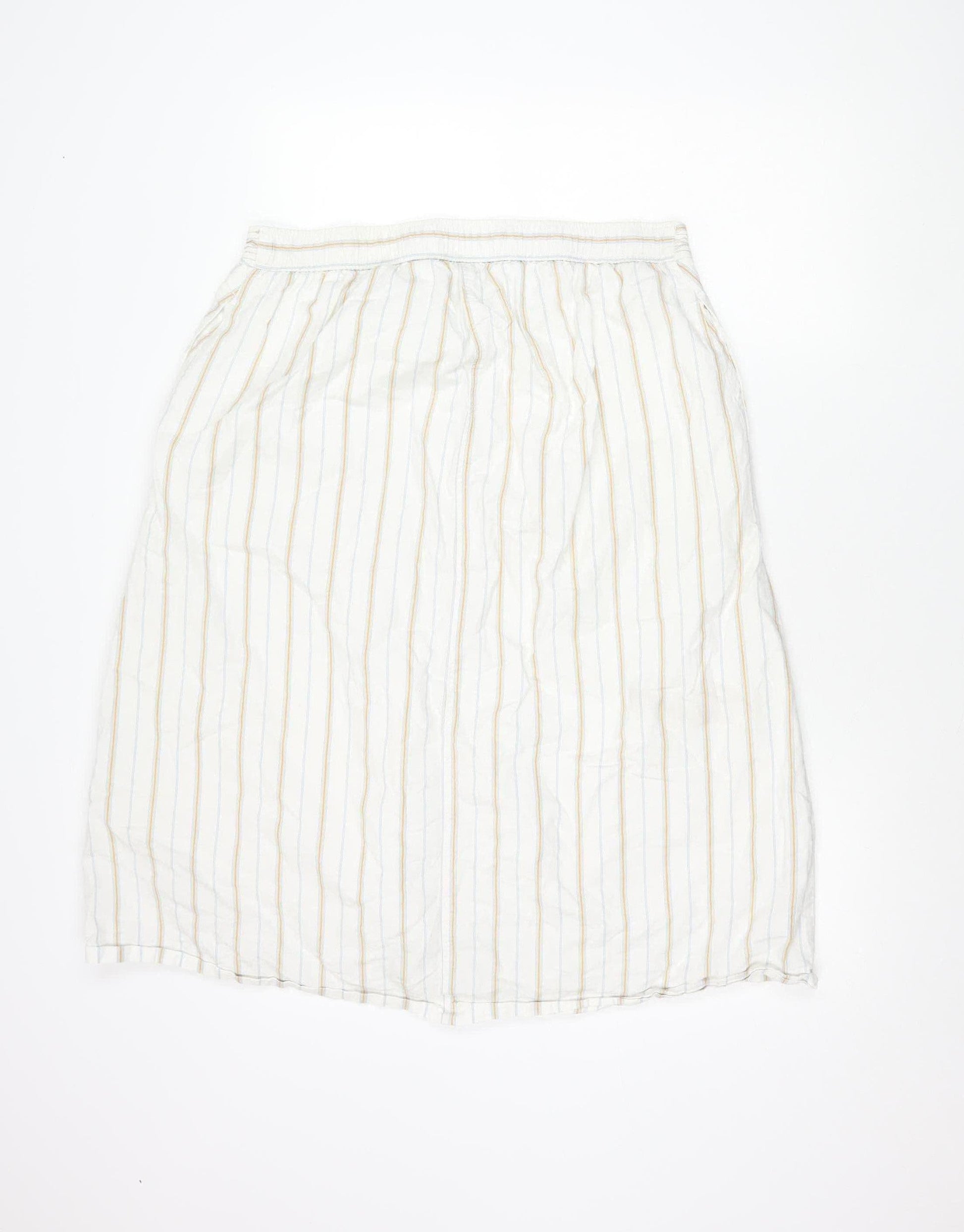 La Redoute Women’s White Striped Button Skirt Size 14 Linen Blend