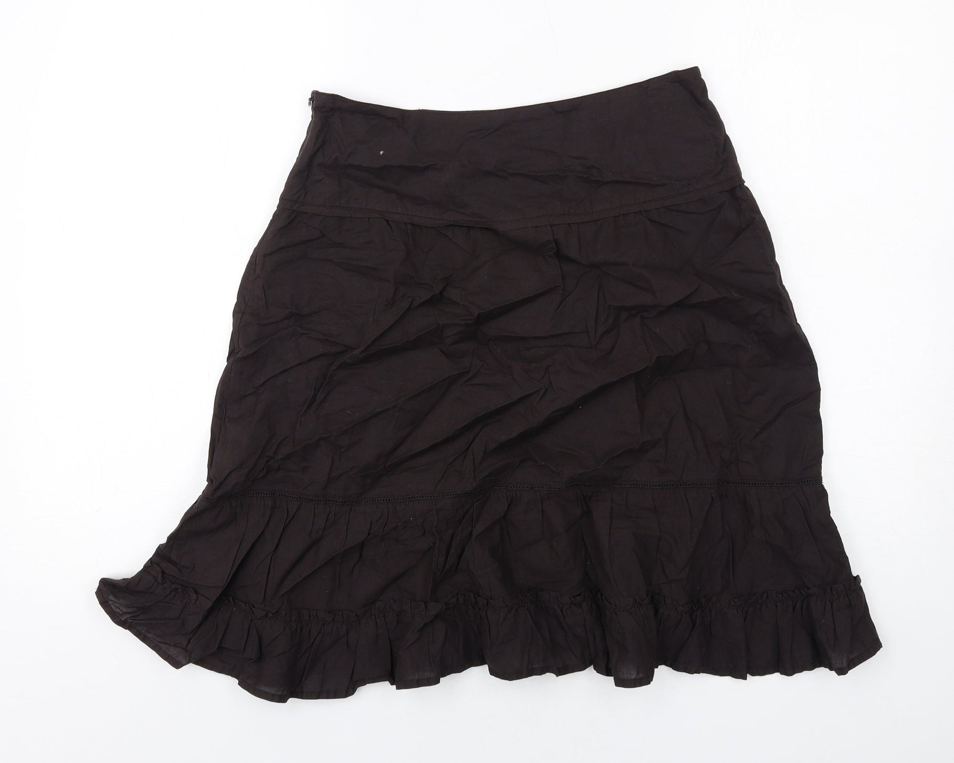 La Redoute Womens Brown Cotton A-Line Skirt Size 8 Zip
