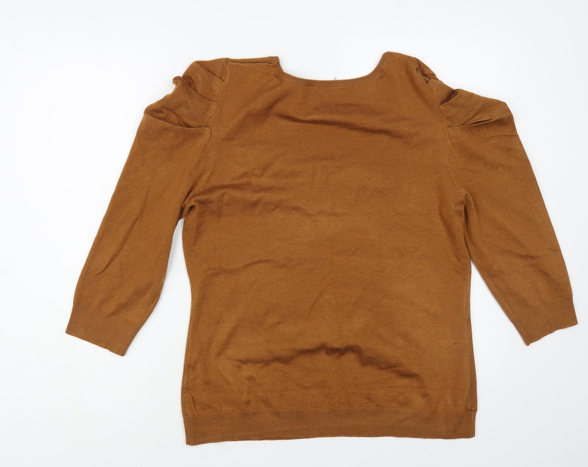 La Redoute Womens Brown Scoop Neck Acrylic Pullover Jumper Size L