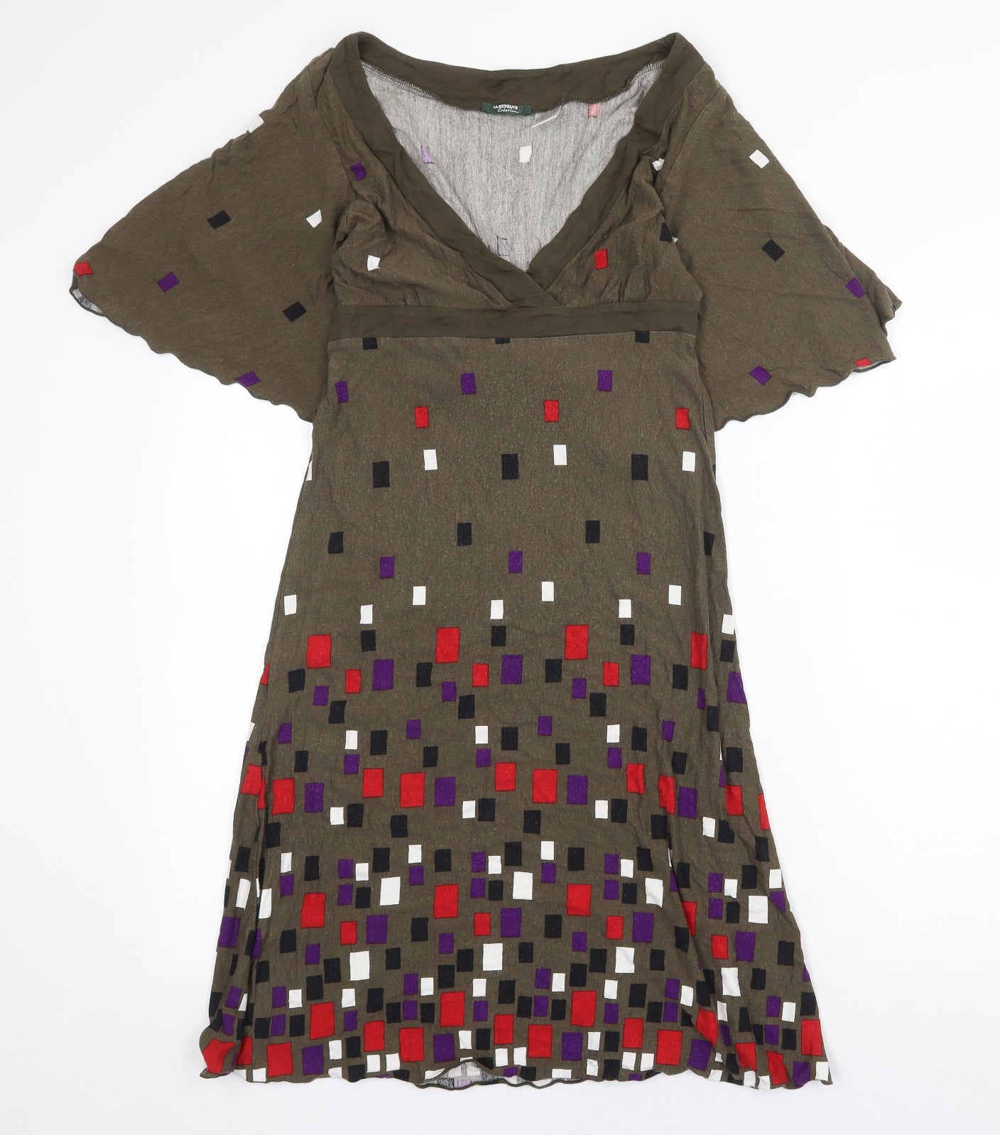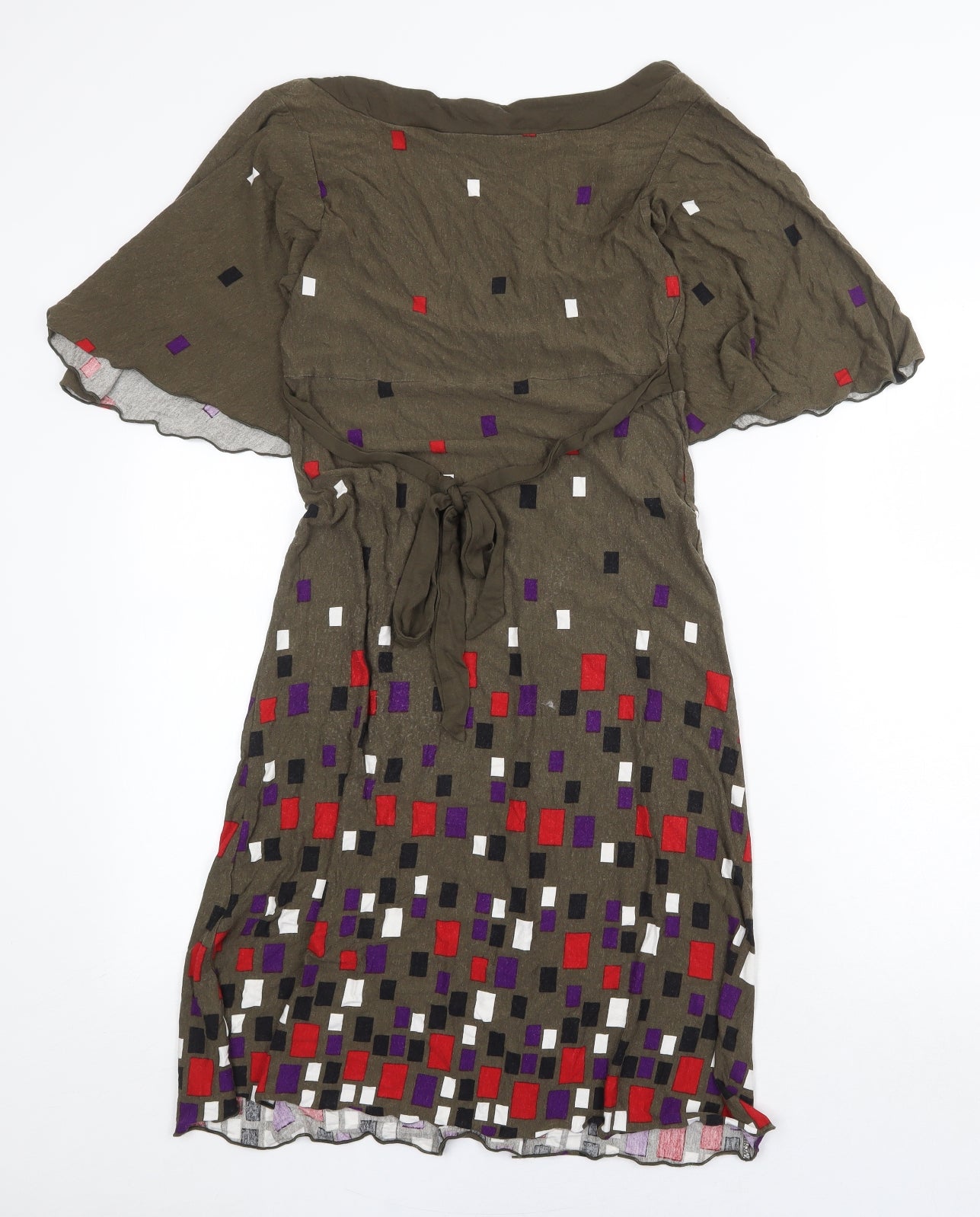 La Redoute Womens Green Geometric Viscose Fit & Flare Size 6 V-Neck Tie
