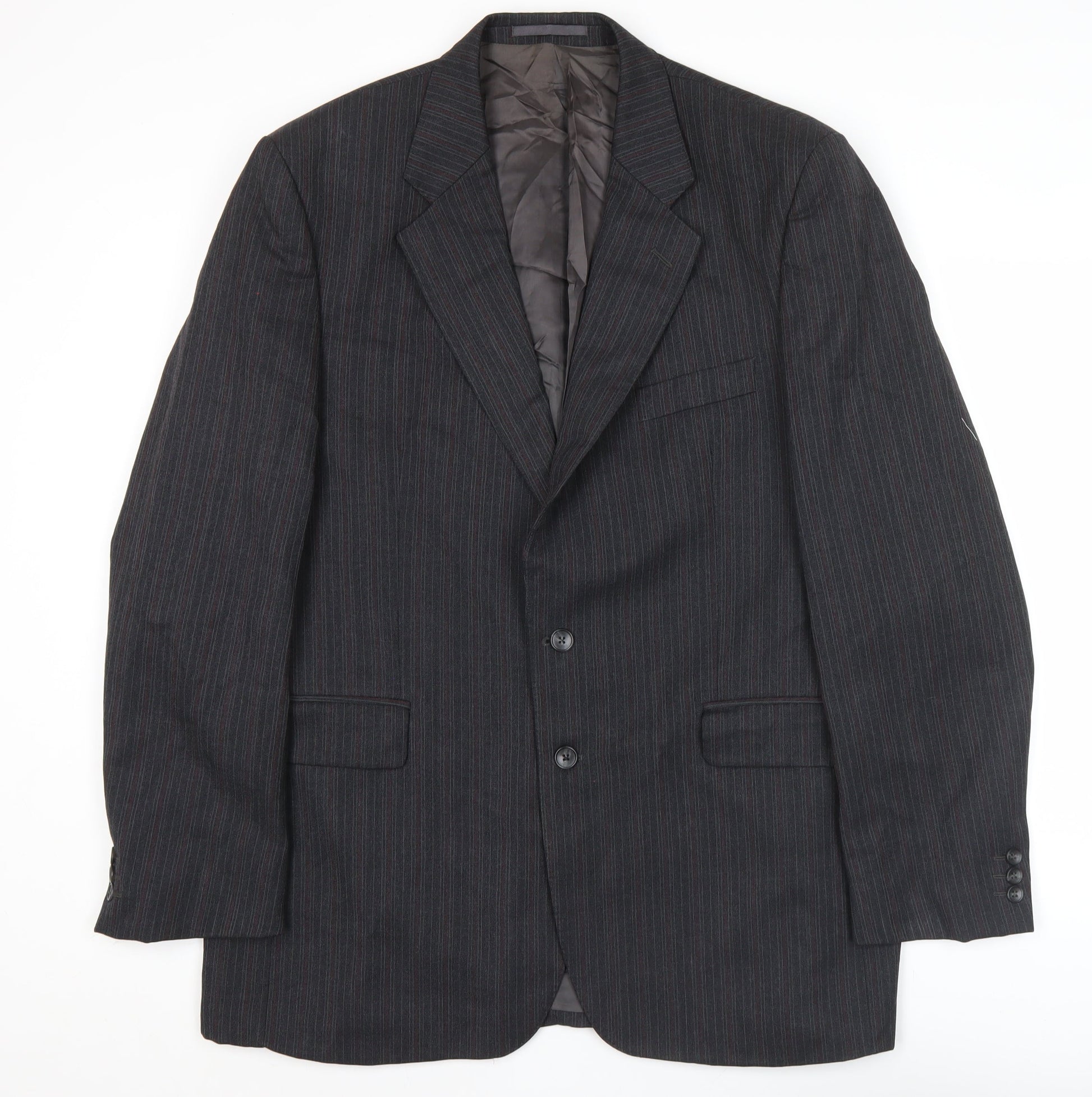 Label Mens Grey Wool Pinstripe Blazer Jacket 41L Classic Fit