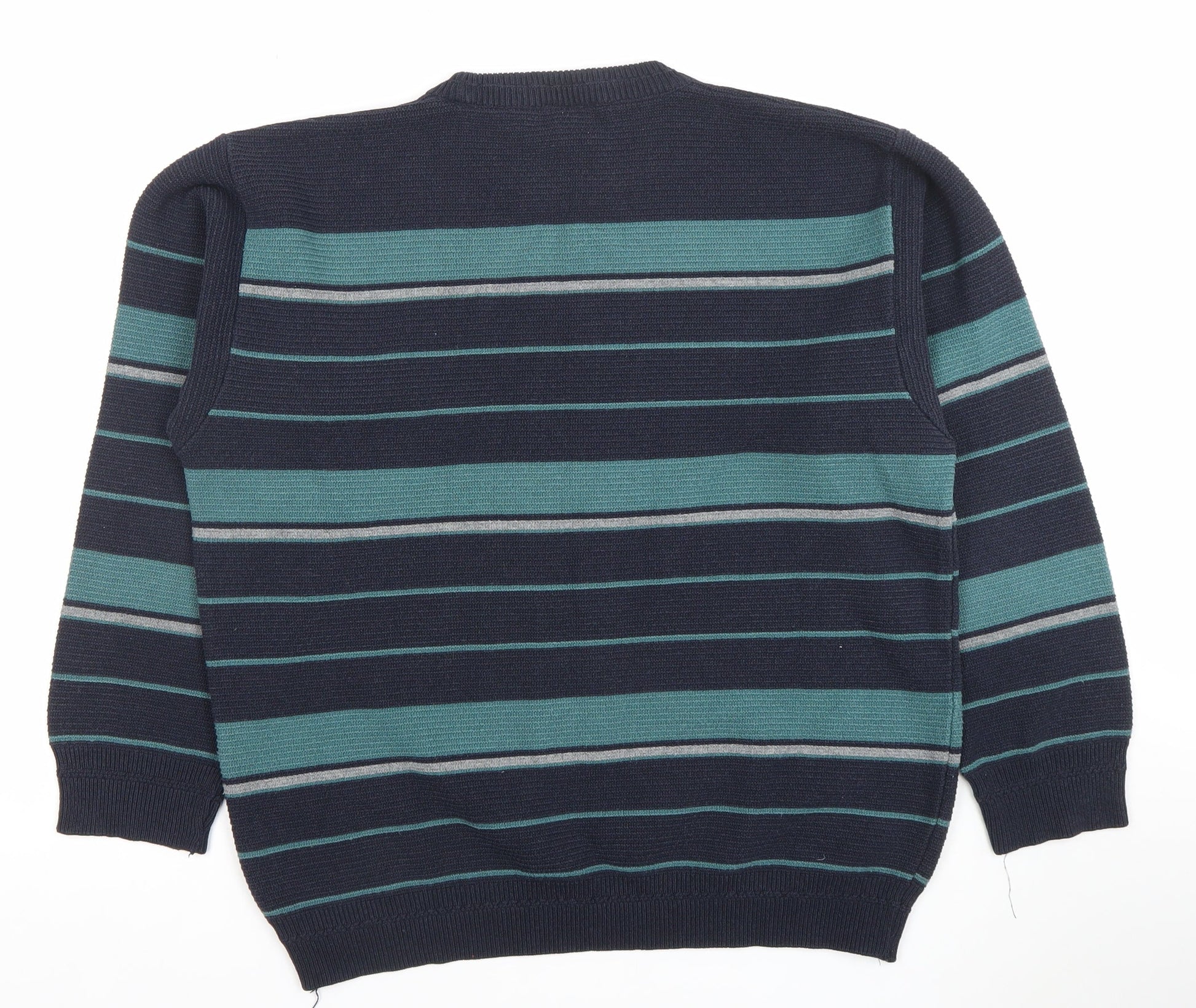 Lacoste Men's Blue Striped Cotton Jumper Size L Crew Neck Pullover
