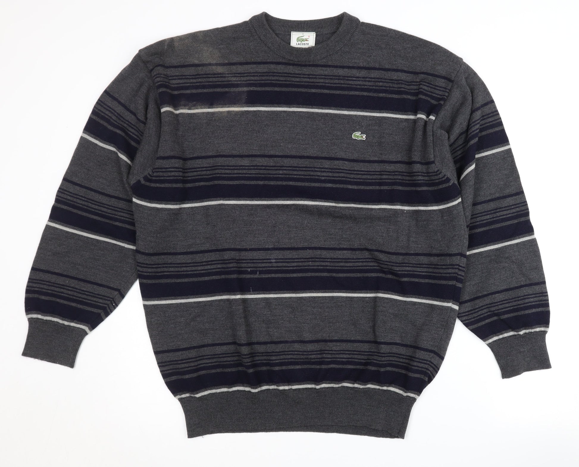 Lacoste Men's Grey Striped Wool Pullover Jumper