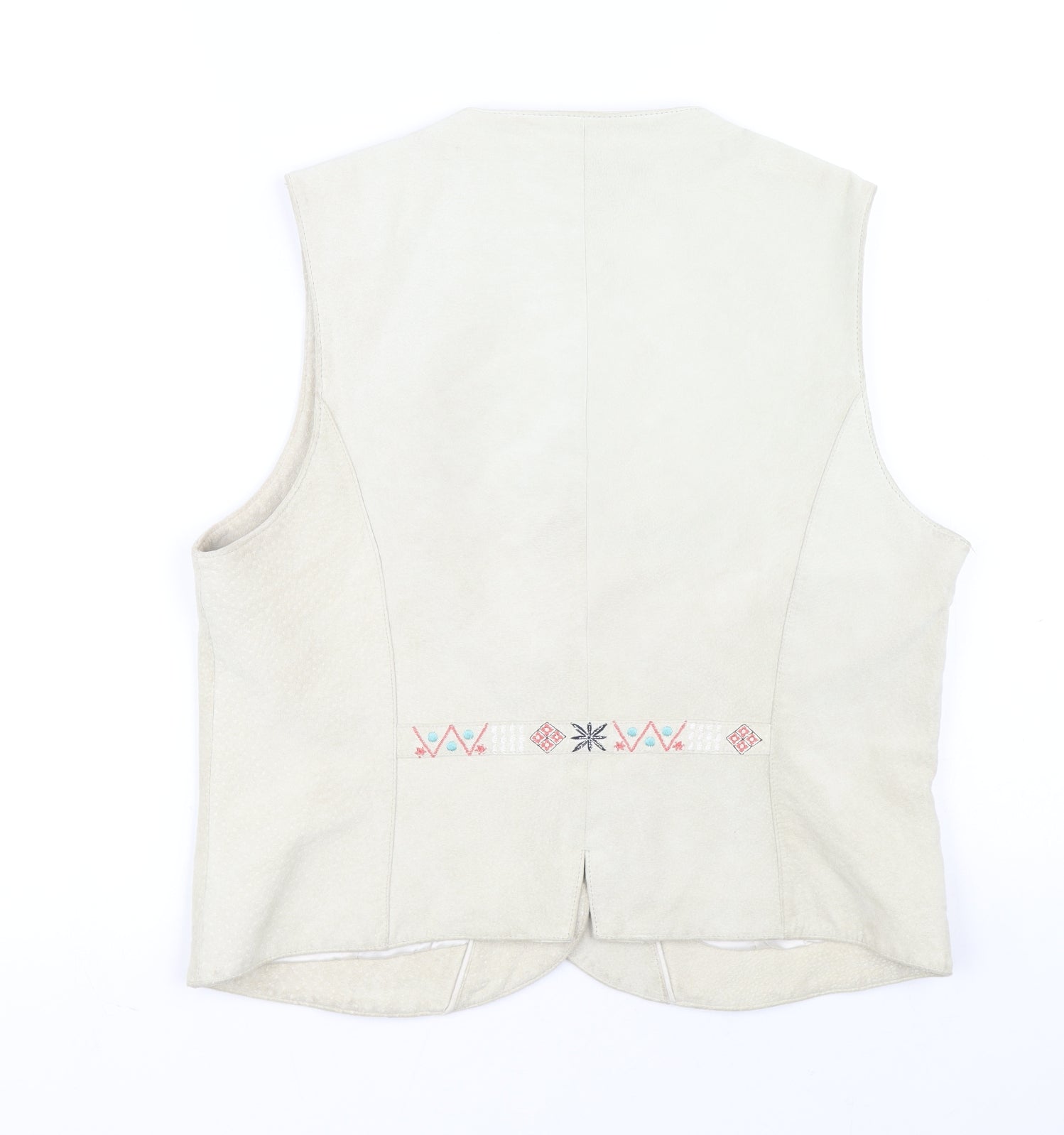 Lakeland Womens Beige Gilet Jacket Size 14 Button - Embroidered detail