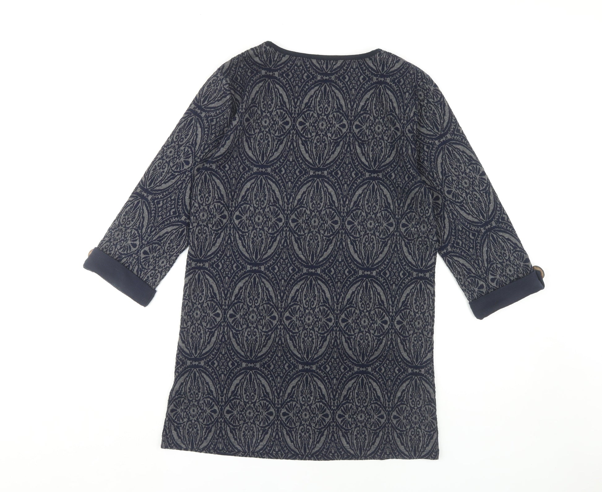 Lakeland Women's Blue Geometric Shift Dress, S, 3/4 Sleeve