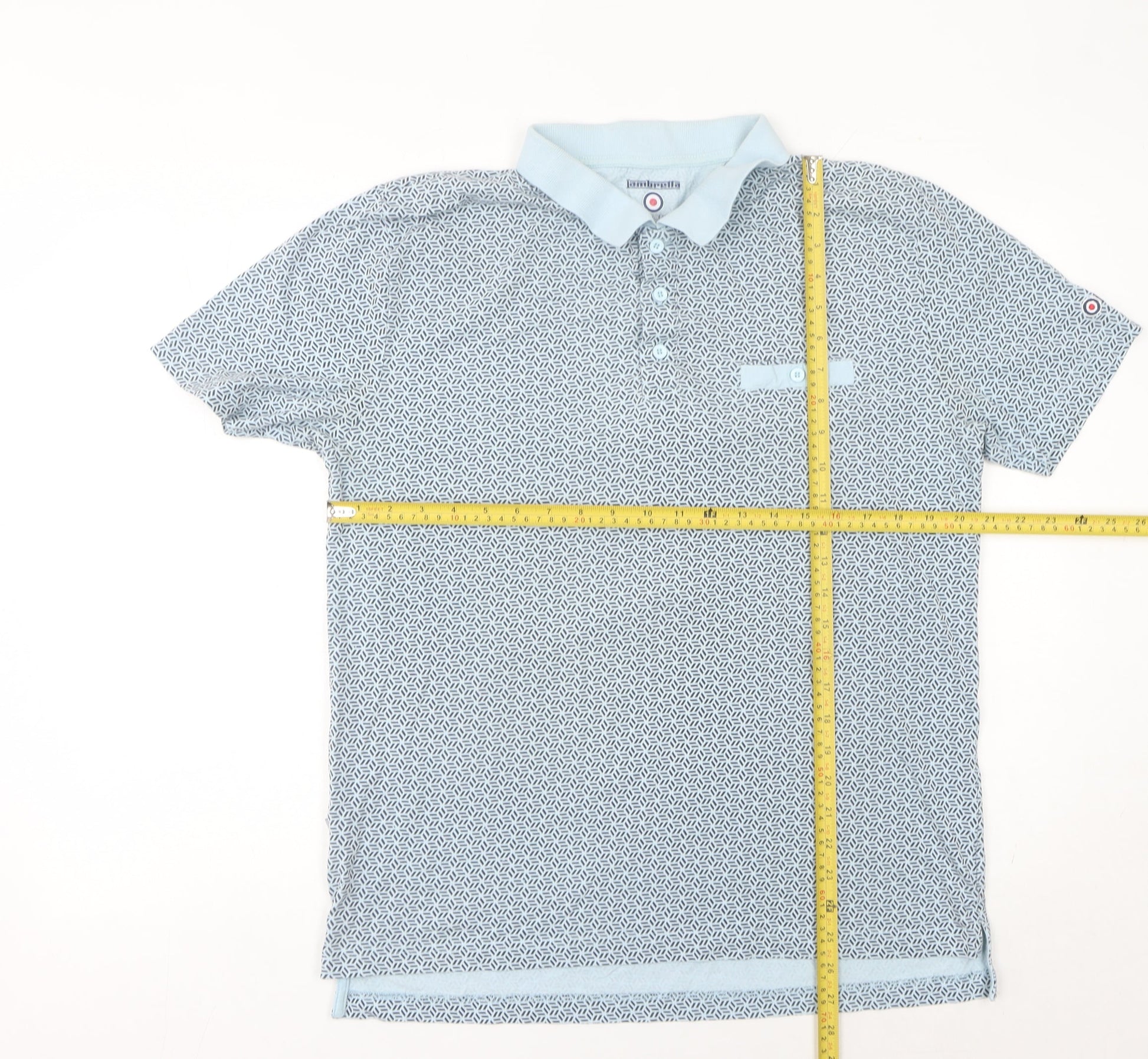 Lambretta Men’s Blue Geometric Cotton Polo Shirt 2XL