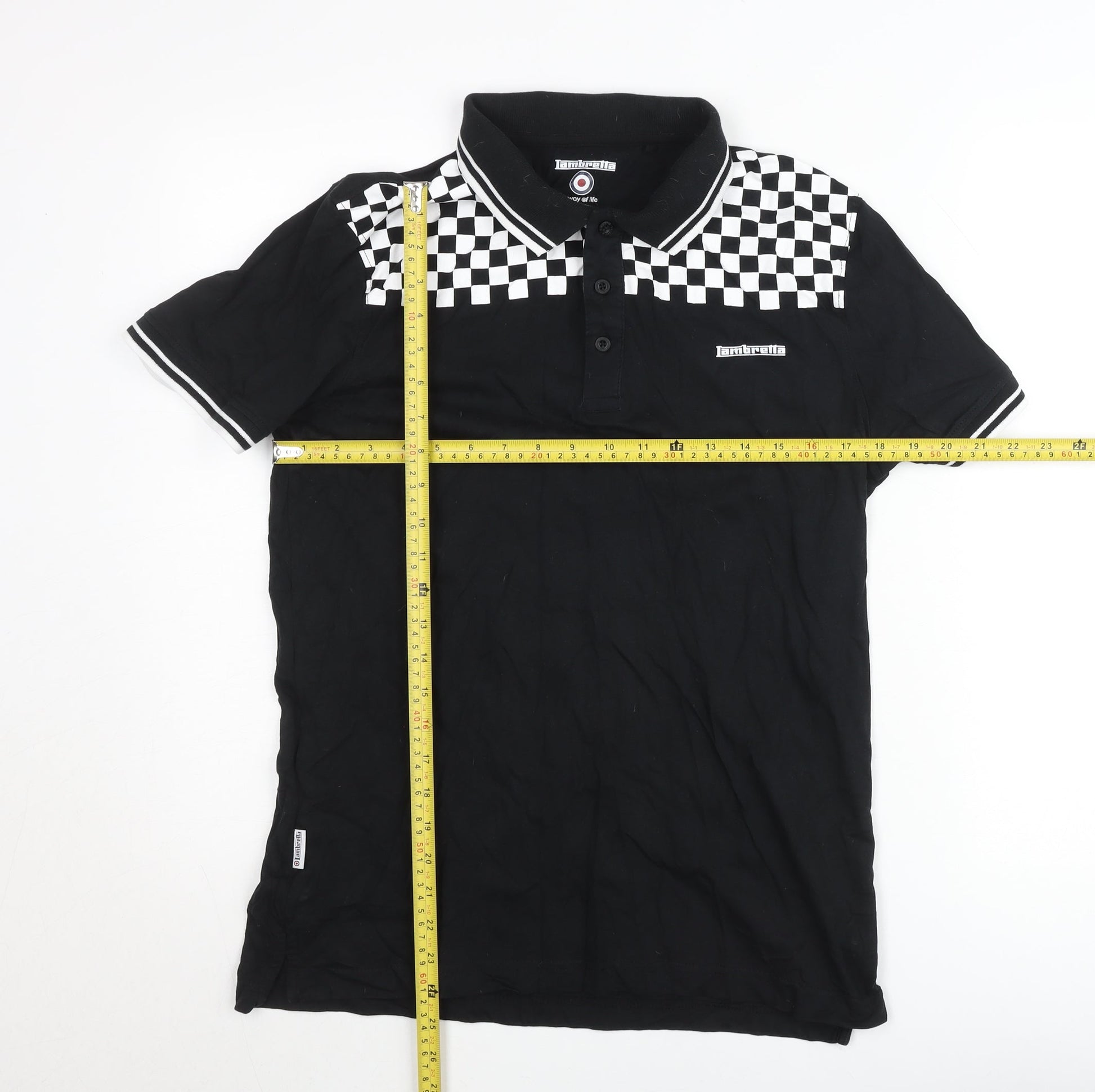 Lambretta Men's Black Check Retro Polo Shirt Small