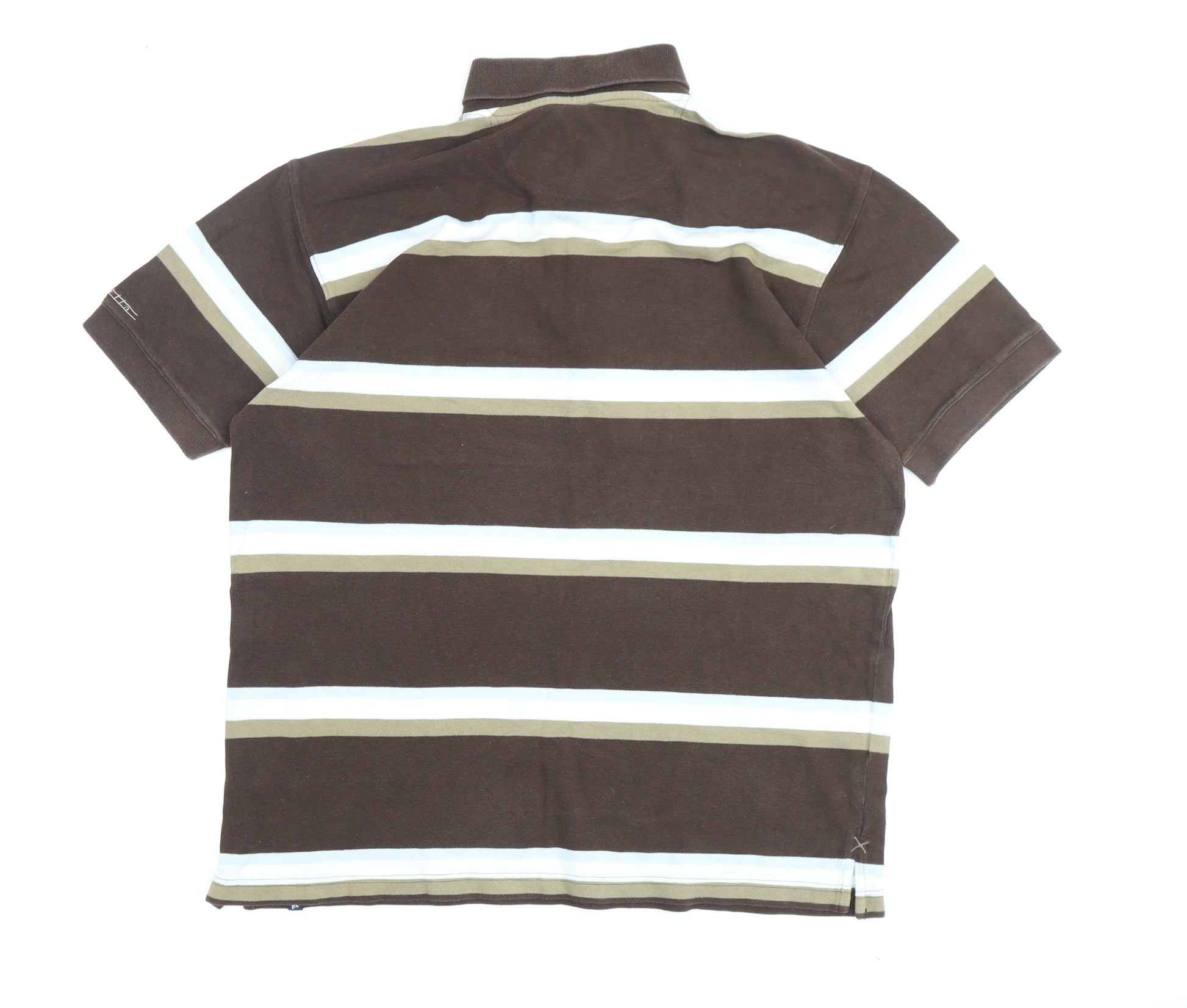Lambretta Men's Brown Striped Collared Polo Shirt XL